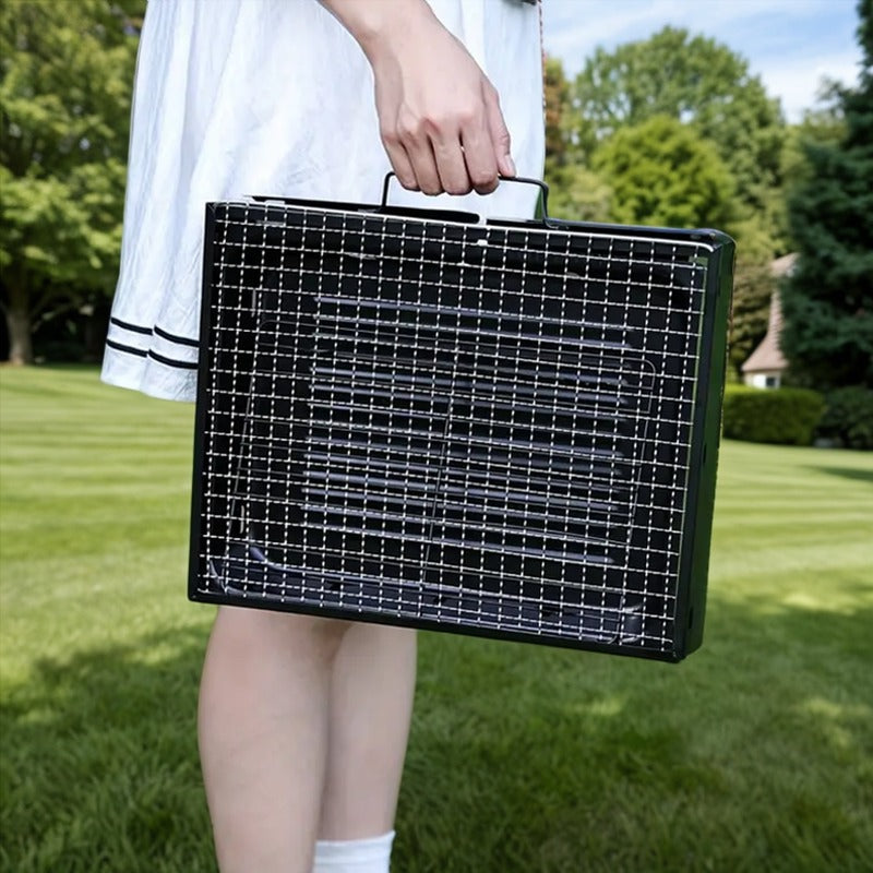 Parrilla portátil negra para barbacoa para camping, tailgating, picnics, sin necesidad de baterías, asas para facilitar el transporte, diseño compacto y resistente