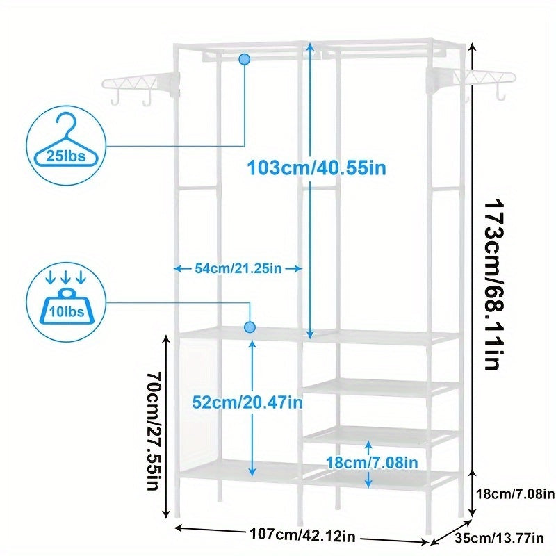Perchero de metal portátil con almacenamiento para zapatos y accesorios para dormitorio, entrada u oficina