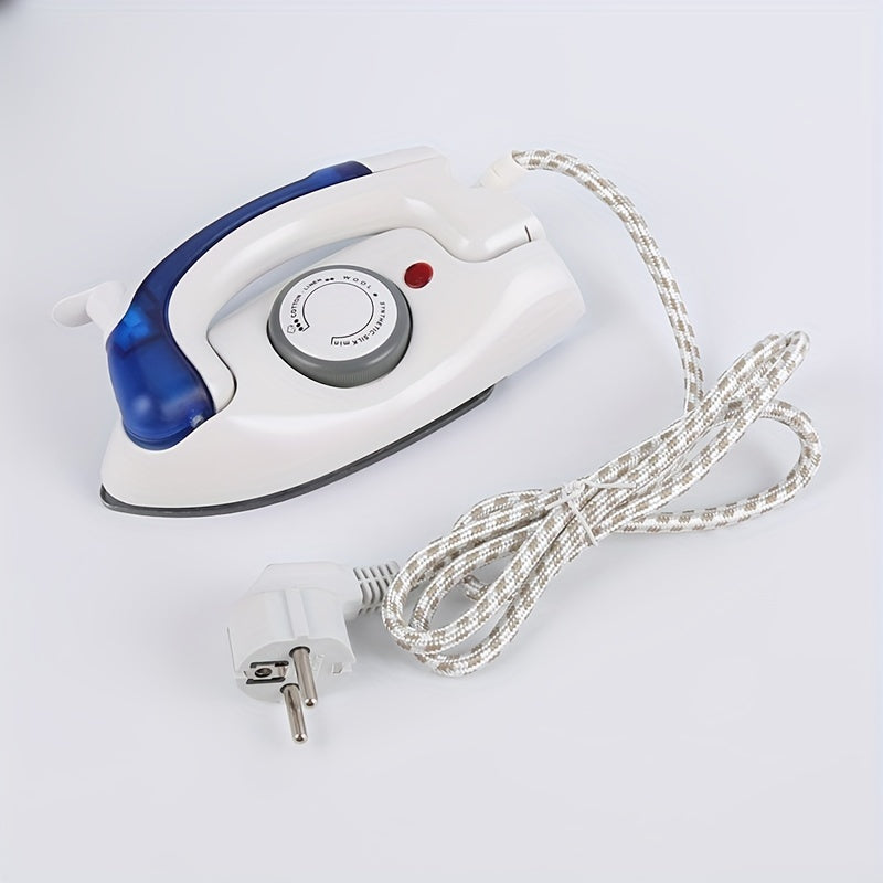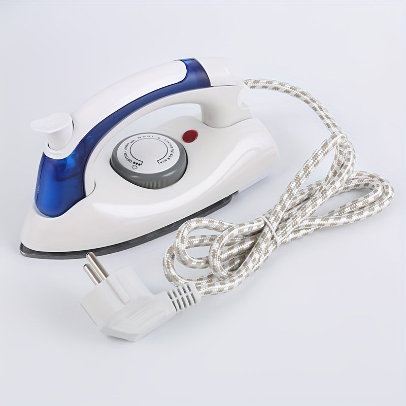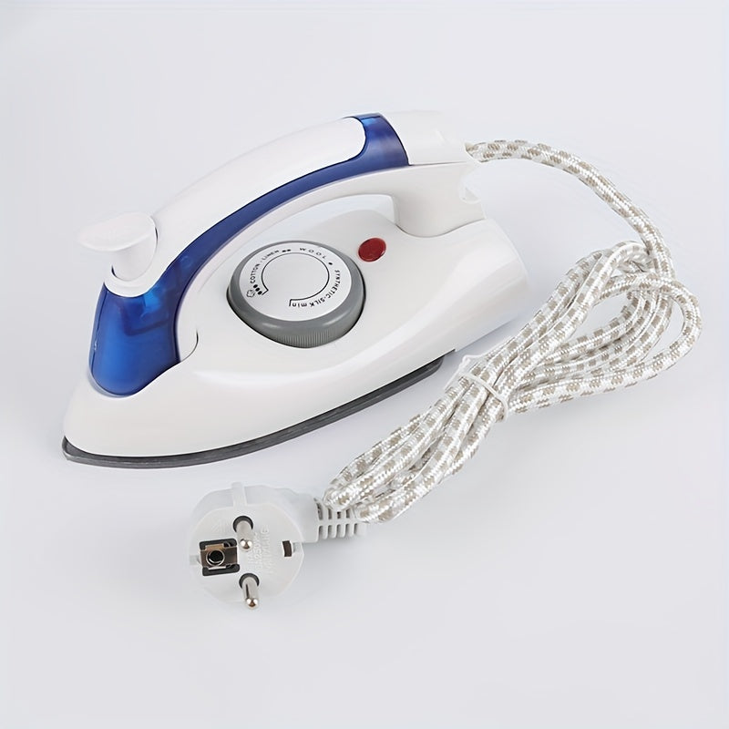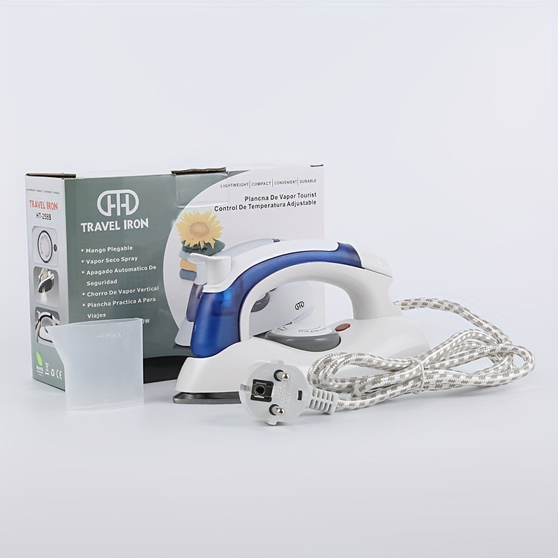 Plancha eléctrica portátil plegable para viajes blanca y azul con suela antiadherente compacta