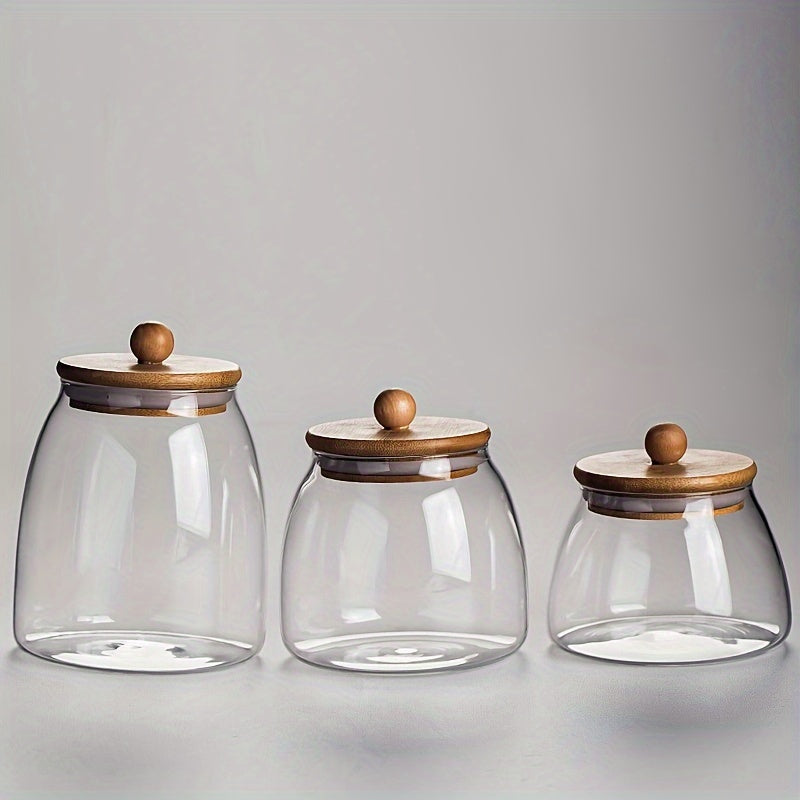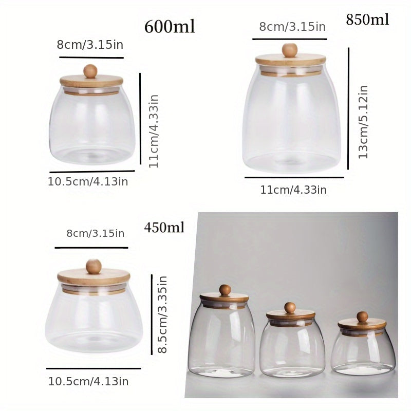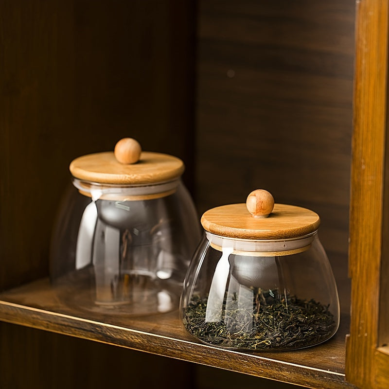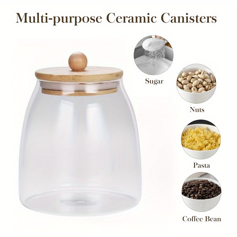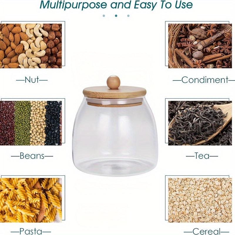 Tarro de almacenamiento de vidrio para alimentos con tapa de bambú, frasco hermético para granos y nueces