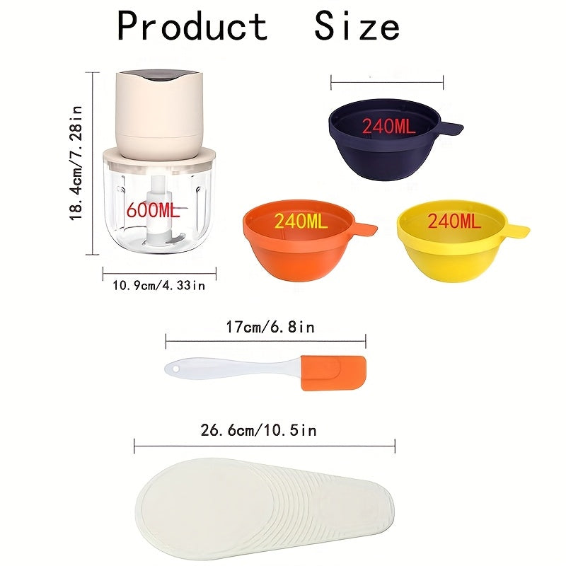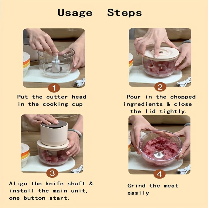 Picadora de carne recargable portátil con USB, 600ml, 1000 RPM