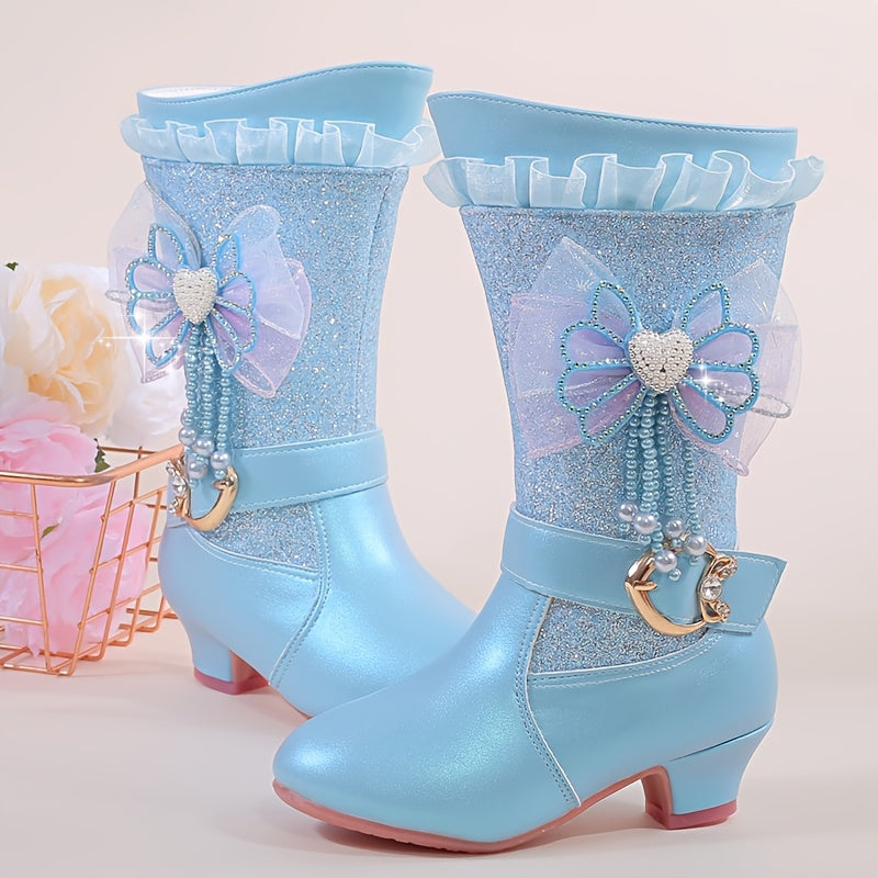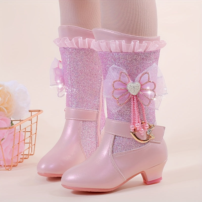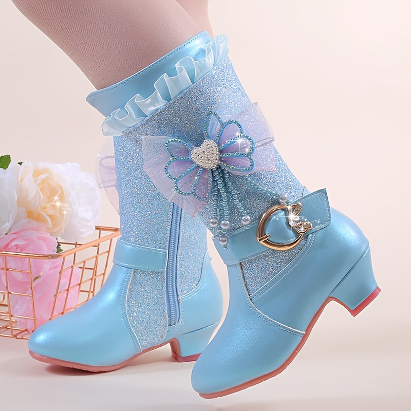 Botines de invierno para niñas con forro de terciopelo, decoración de lazo y suela de goma