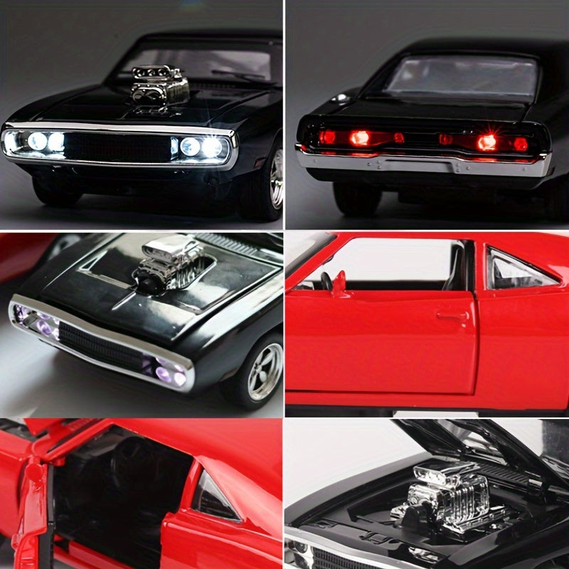 Coche de juguete de aleación roja fundida a presión a escala 1:32 con puertas que se abren y funciones de luz