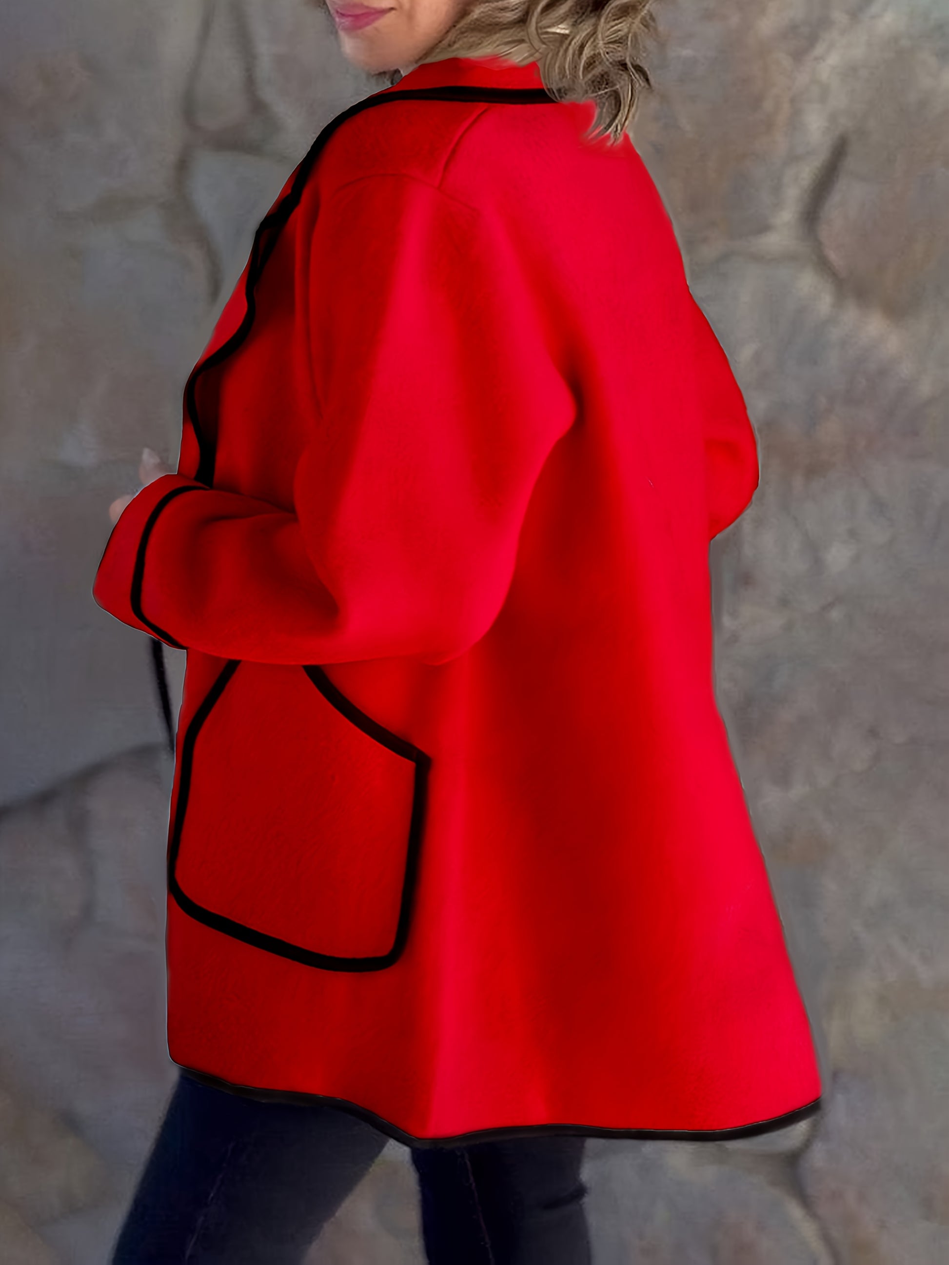 Abrigo de tweed rojo para mujer con doble botonadura, a prueba de viento, cálido, para otoño e invierno, con bolsillos