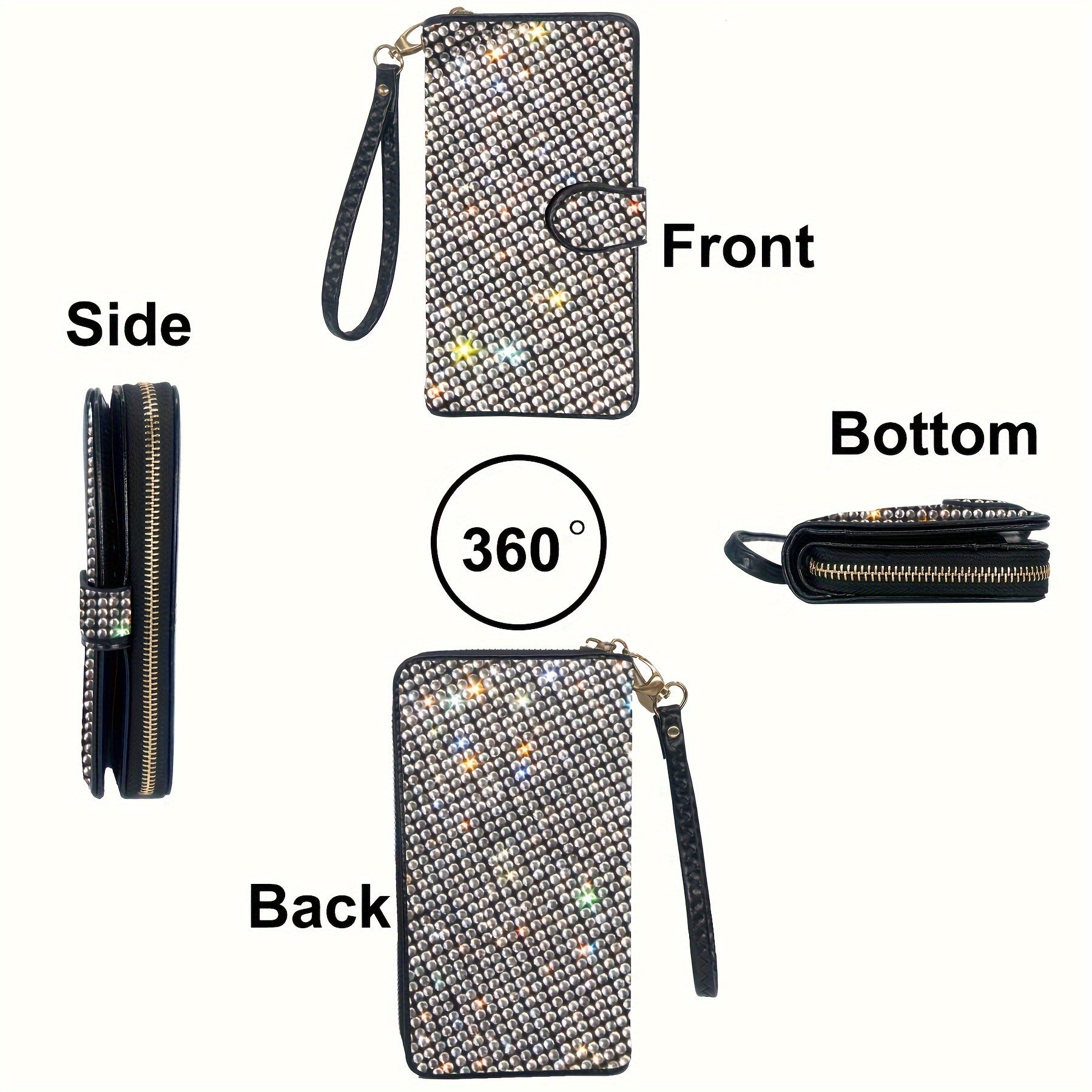 Cartera decorada con pedrería con gran capacidad y tarjetero de cuero sintético elegante con asa