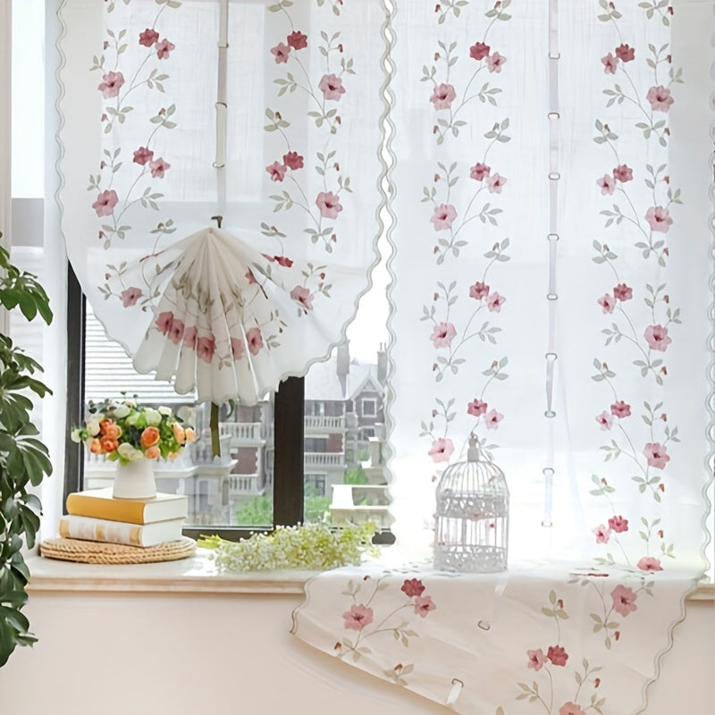 Cortina bordada con flores rojas para sala, dormitorio y cocina decoración elegante