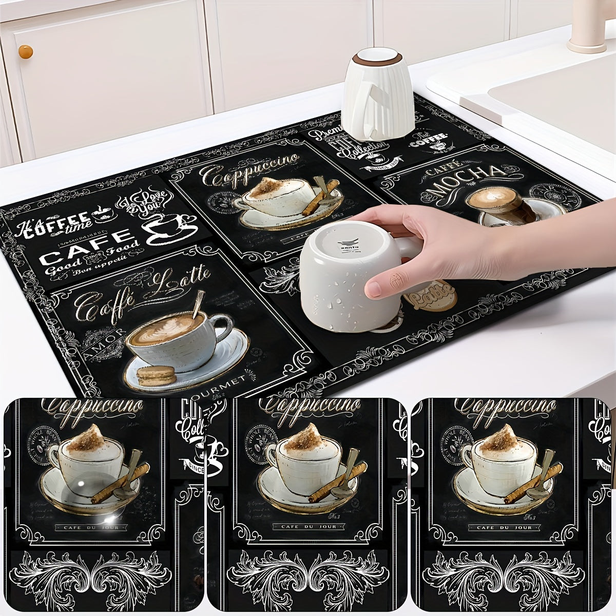 Alfombrilla de secado de goma con estampado retro de café, barro de diatomas duradero, multiusos