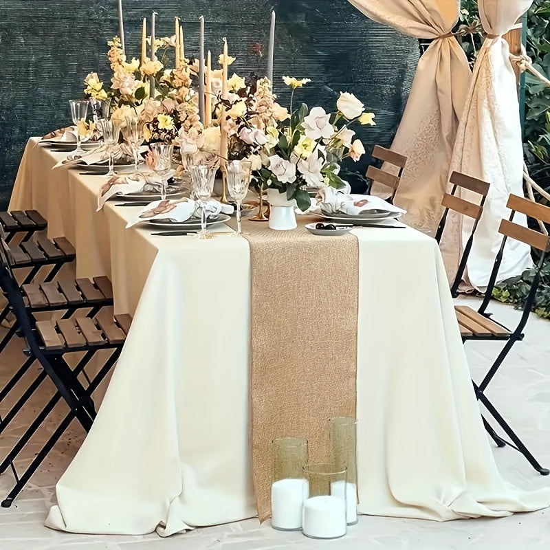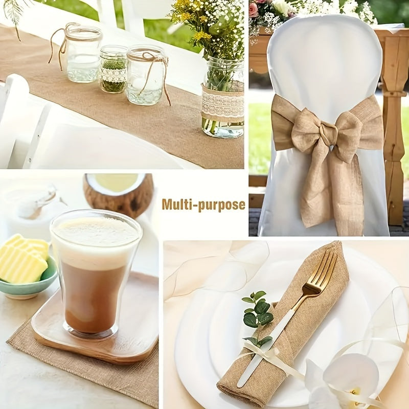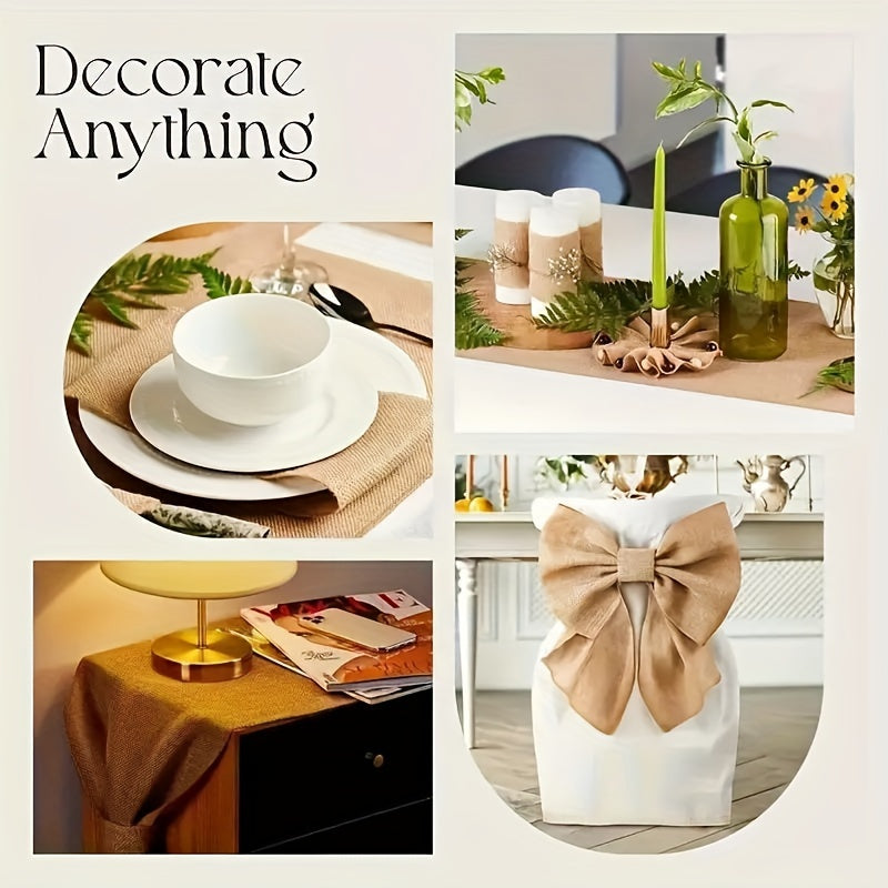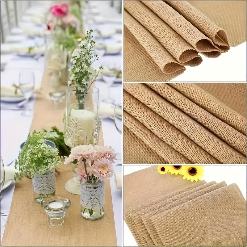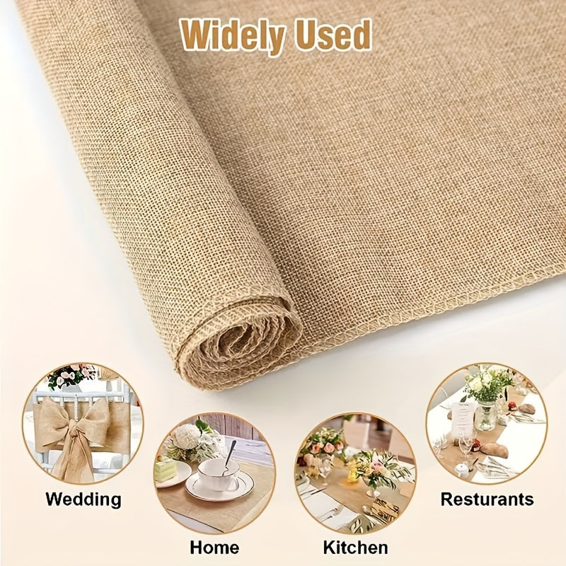 Camino de mesa de arpillera rústica de yute trenzado con bordes con flecos para bodas, fiestas y cenas