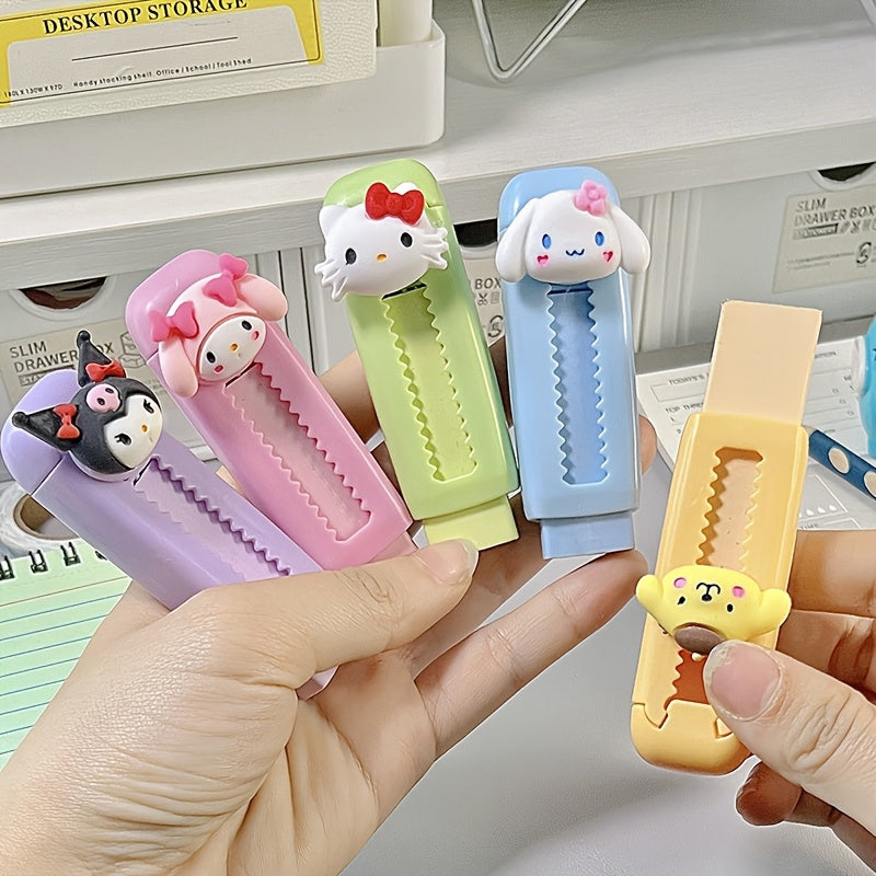 Borrador retráctil para oficina y escuela, colorido, sin ensuciar, diseño de dibujos animados