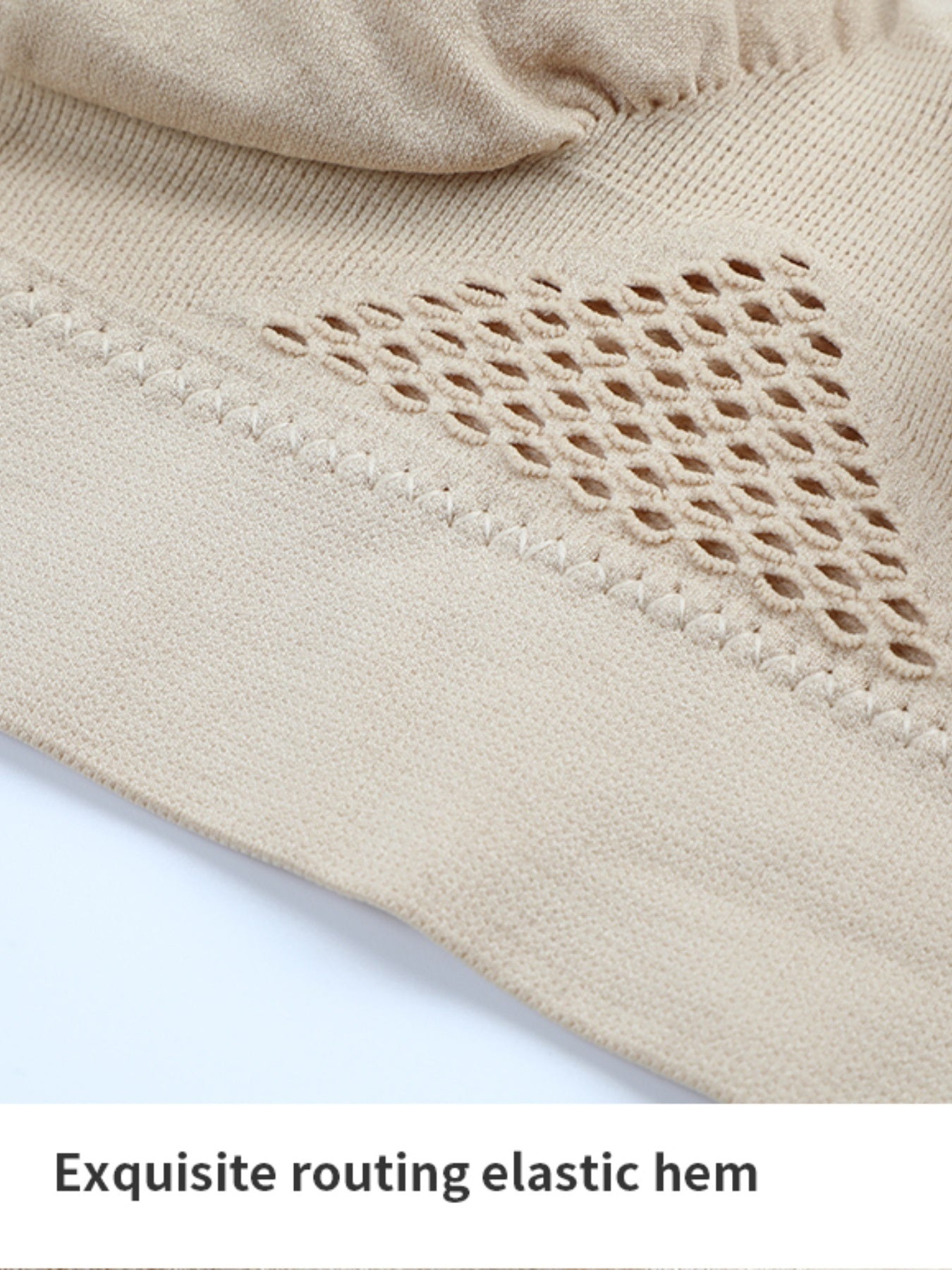 Sujetador deportivo sin costuras para mujer de talla grande en color morado con malla transpirable, con relleno push-up y pads removibles