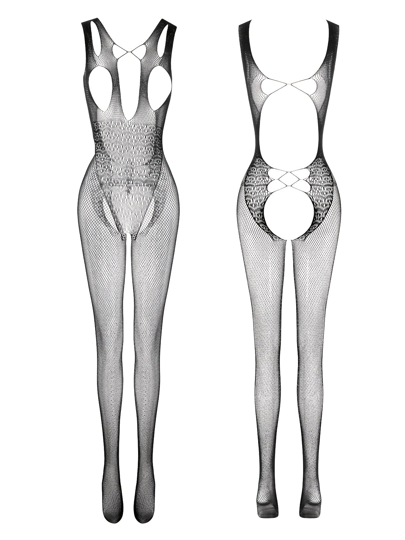 Body de encaje negro para mujer con entrepierna abierta y frontal