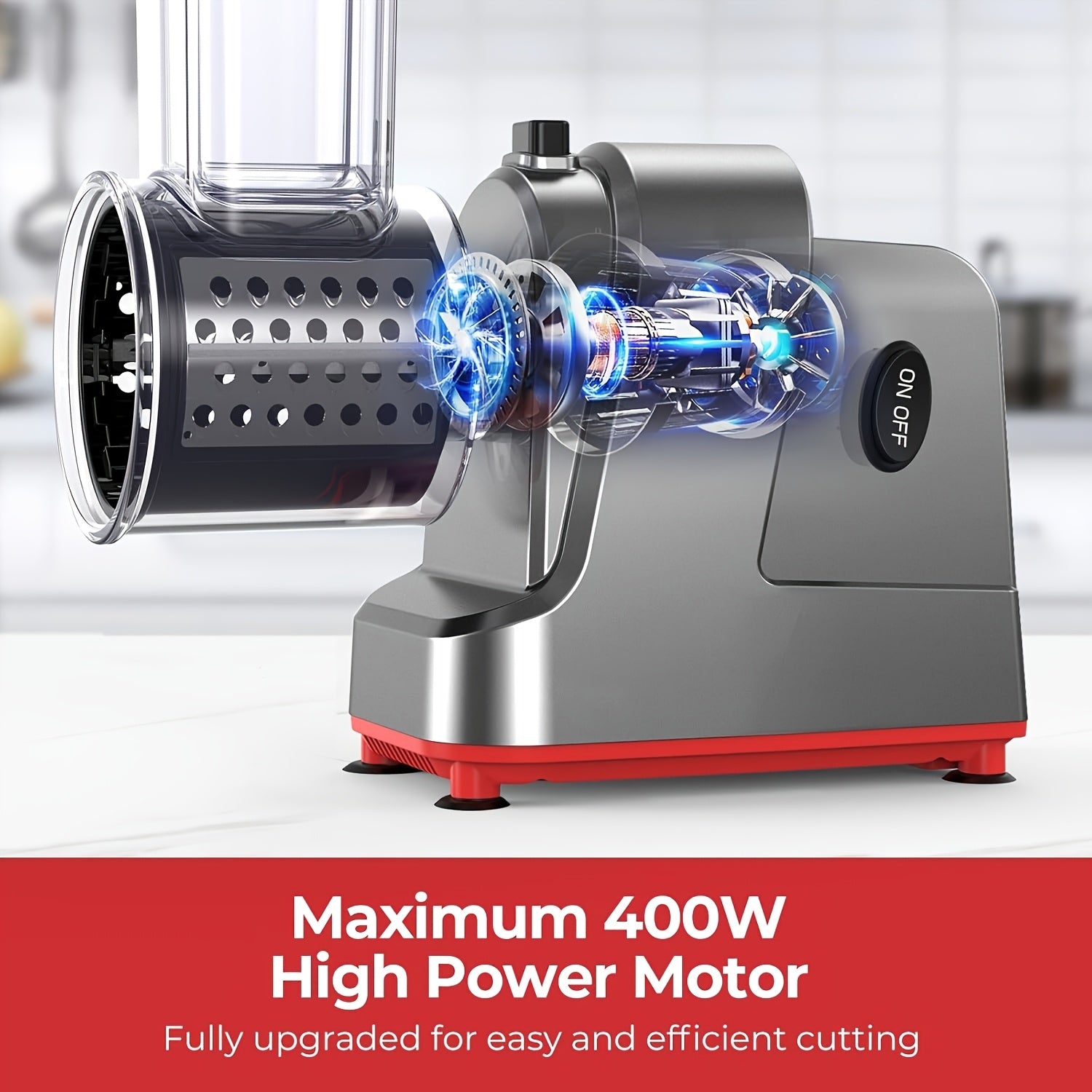 Rallador de queso eléctrico 5 en 1, con 5 cuchillas para rebanar y rallar, y máquina para ensaladas