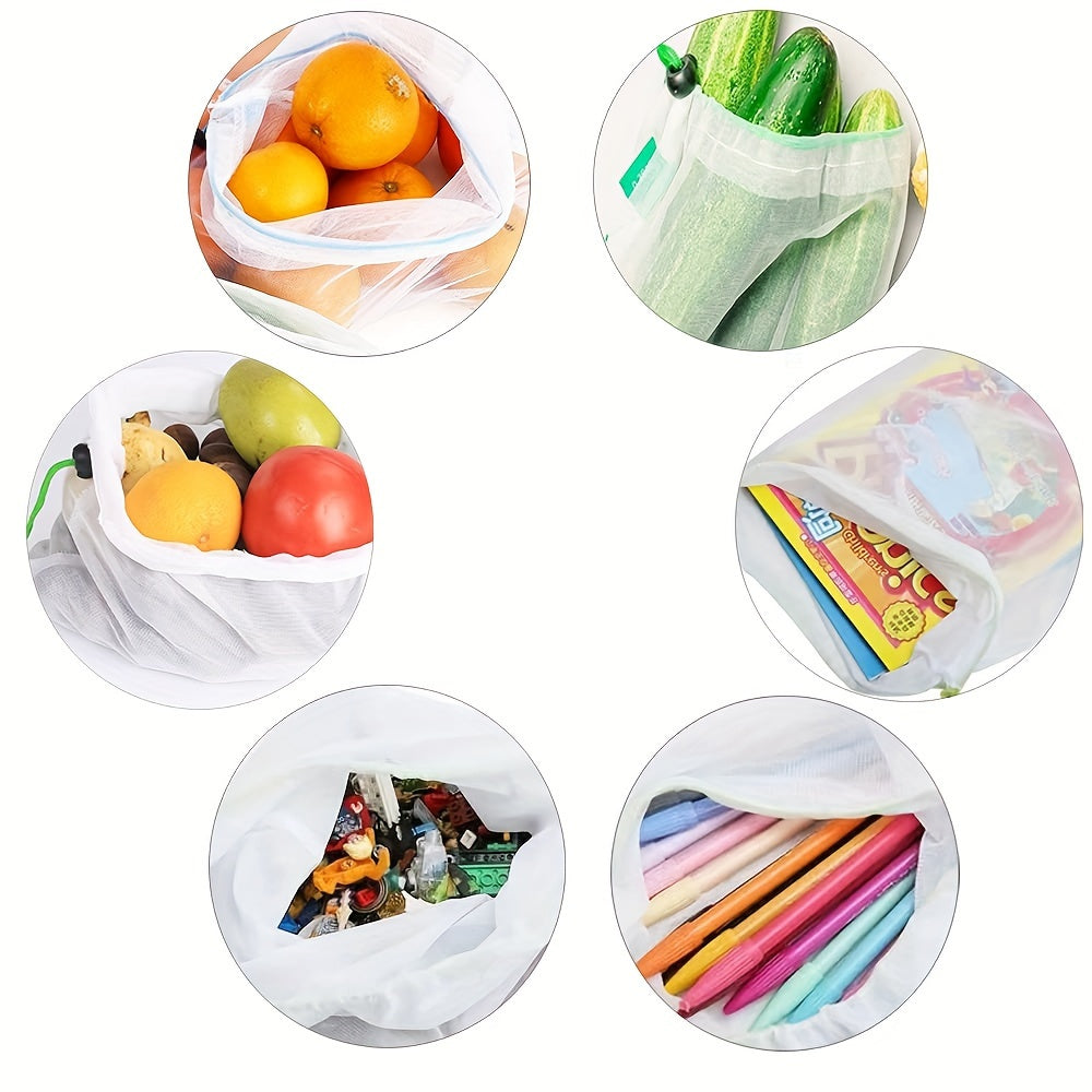 Juego de 16 bolsas de almacenamiento de malla en 3 tamaños, bolsas organizadoras reutilizables con cordón
