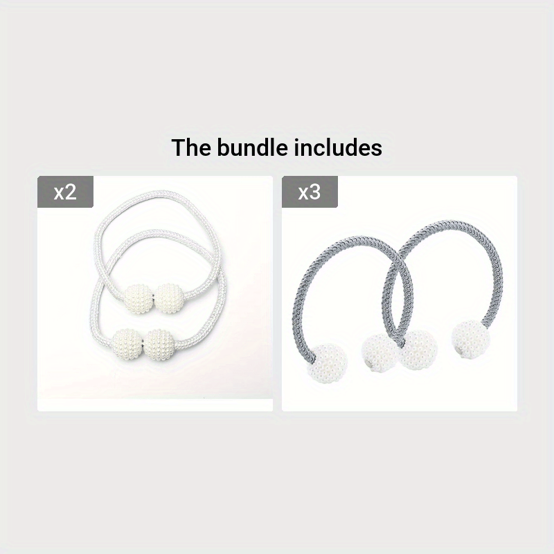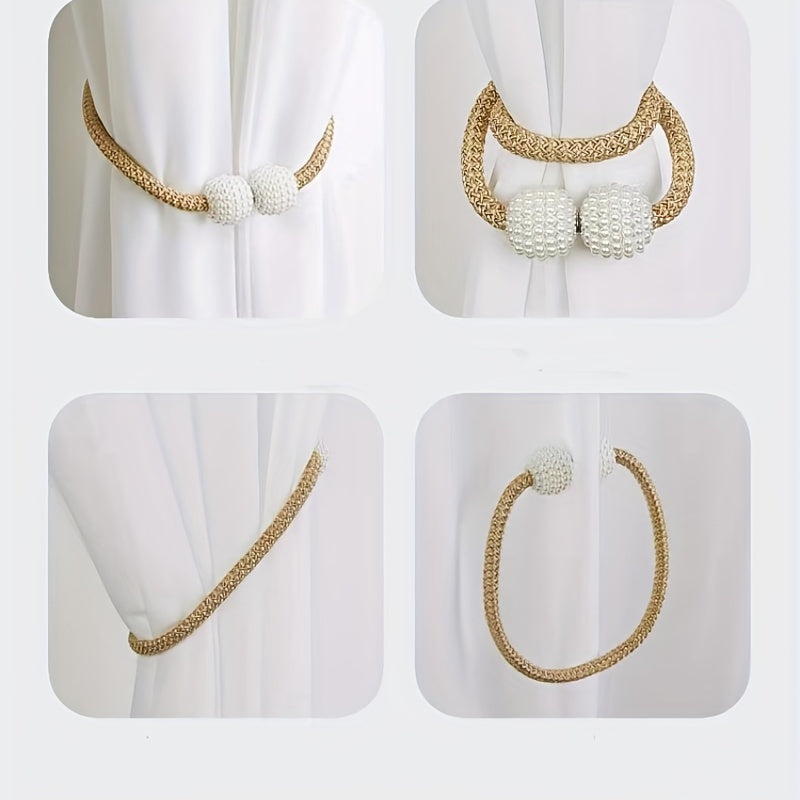 Juego de 2 correas magnéticas para cortinas con perlas falsas, hebillas elegantes para sala de estar, dormitorio, oficina