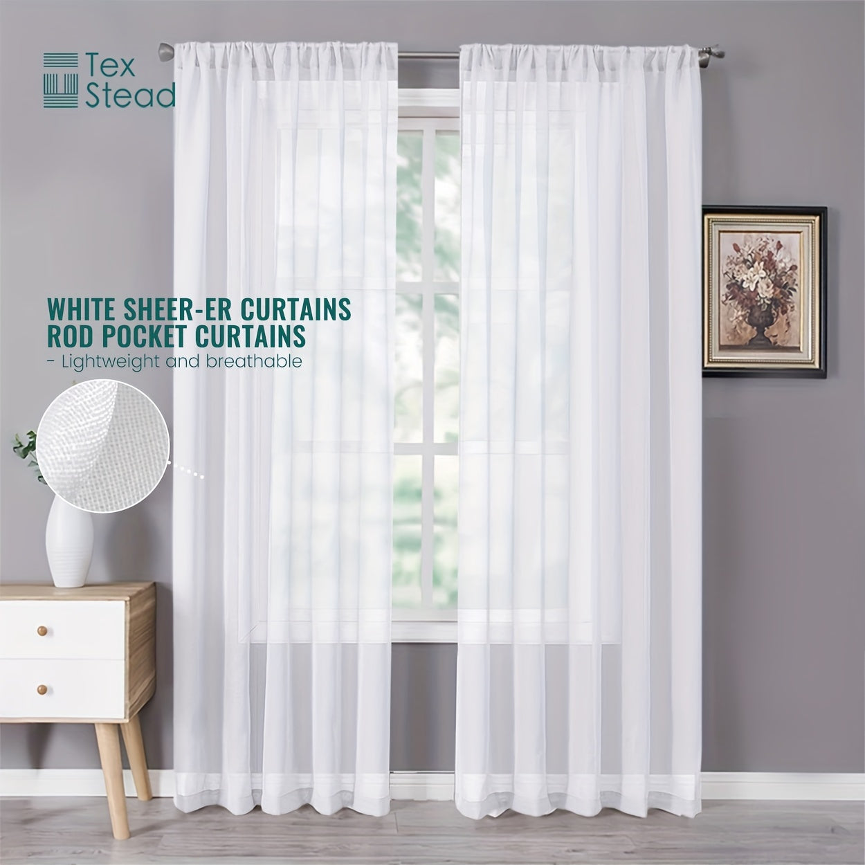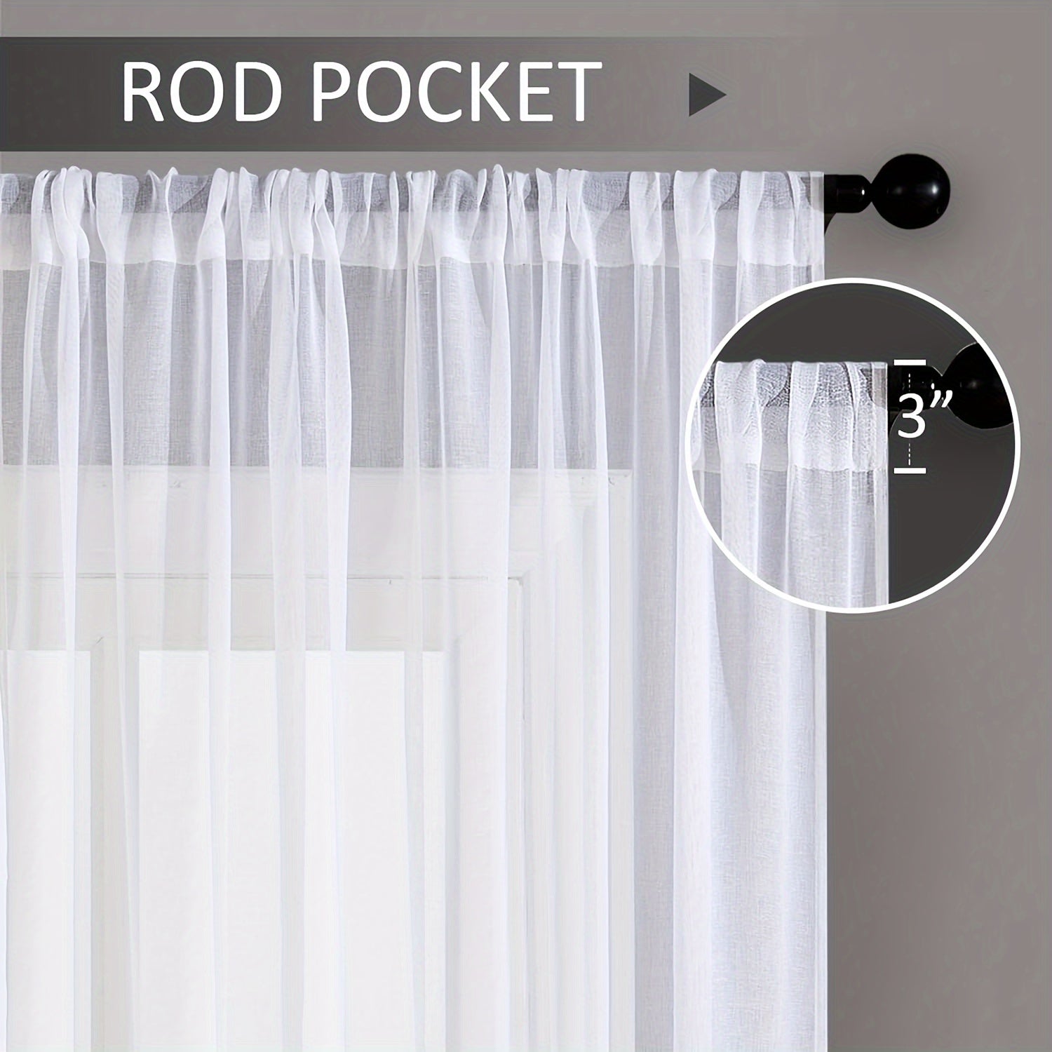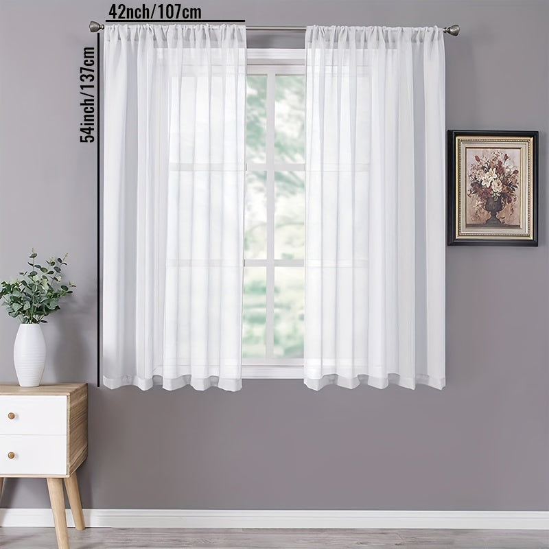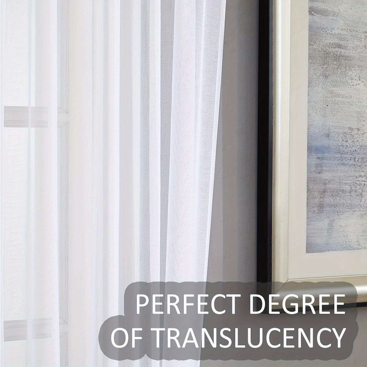 Juego de 2 cortinas de cocina semi-translúcidas con textura de lino blancas para cafetería, sala de estar y dormitorio