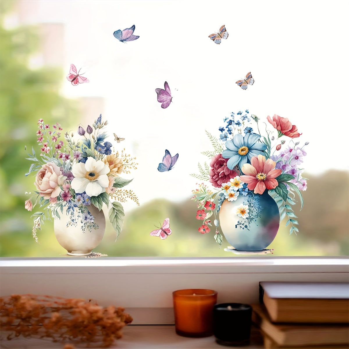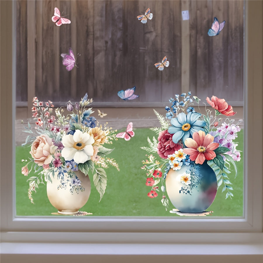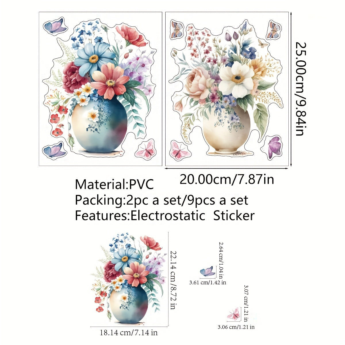 Juego de 2 pegatinas electrostáticas para ventanas con flores en maceta para decoración del hogar en sala de estar y baño