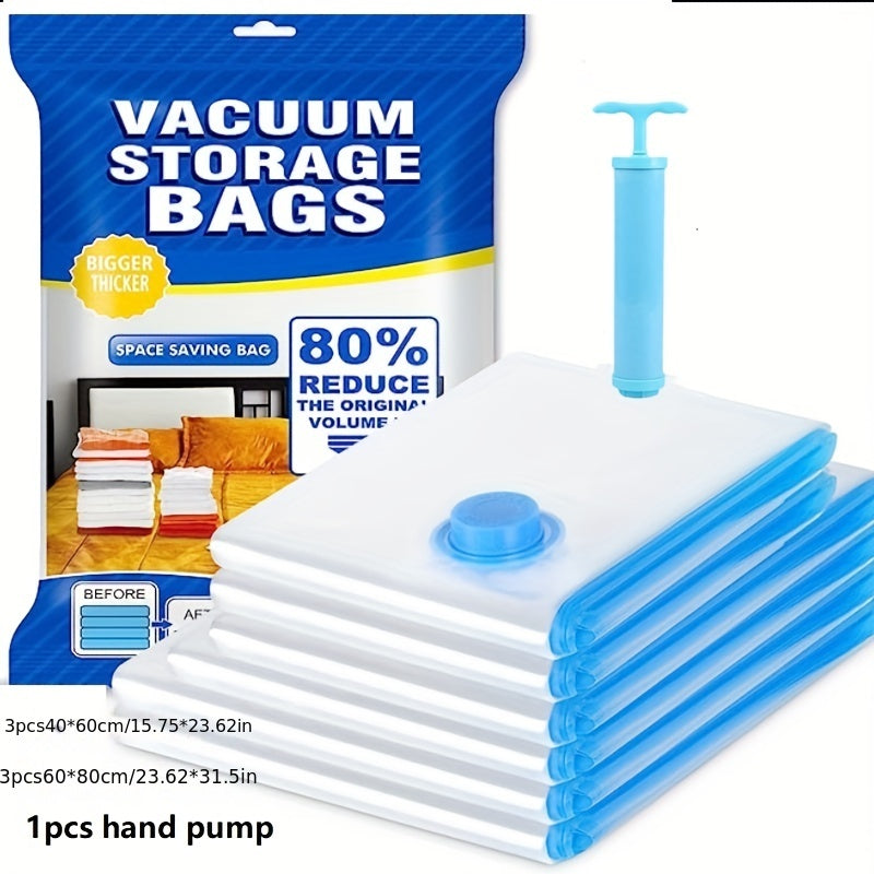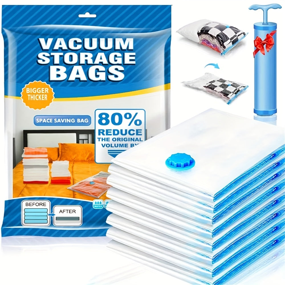 Juego de 4 bolsas de almacenamiento con compresión por vacío transparentes para ropa y artículos del hogar