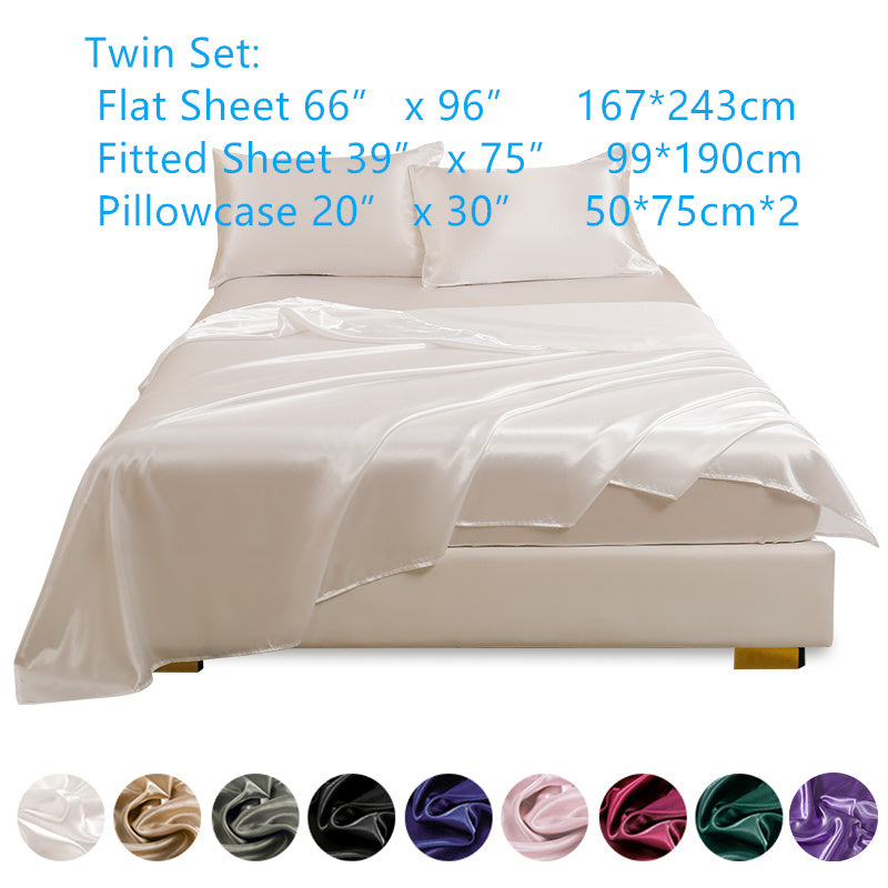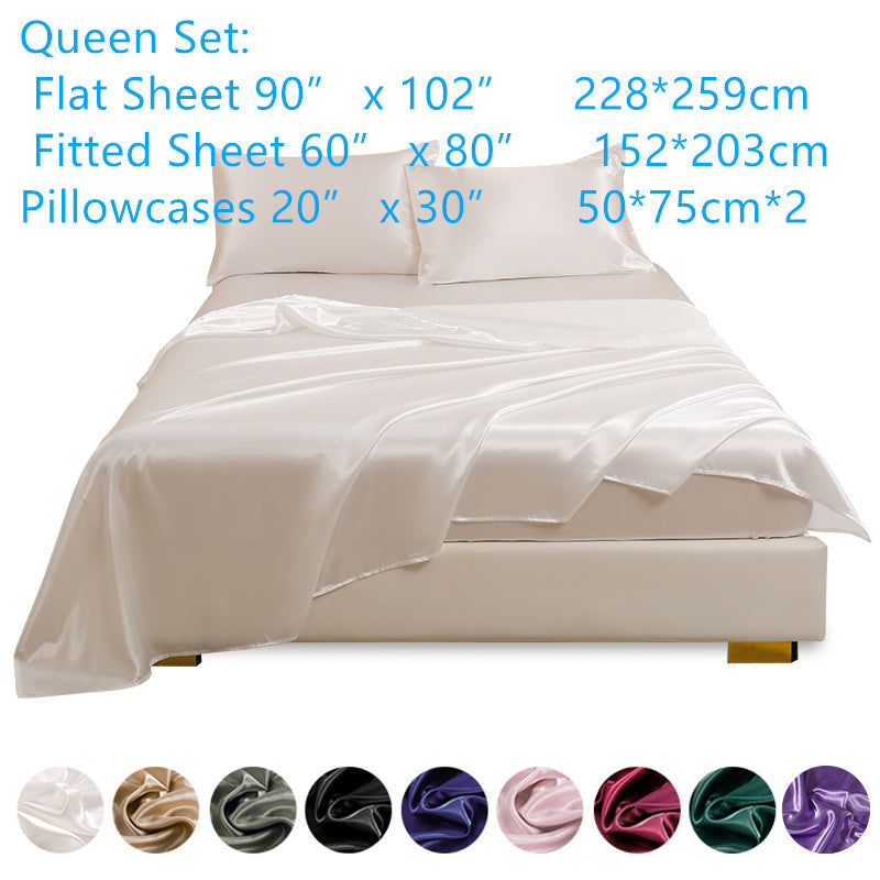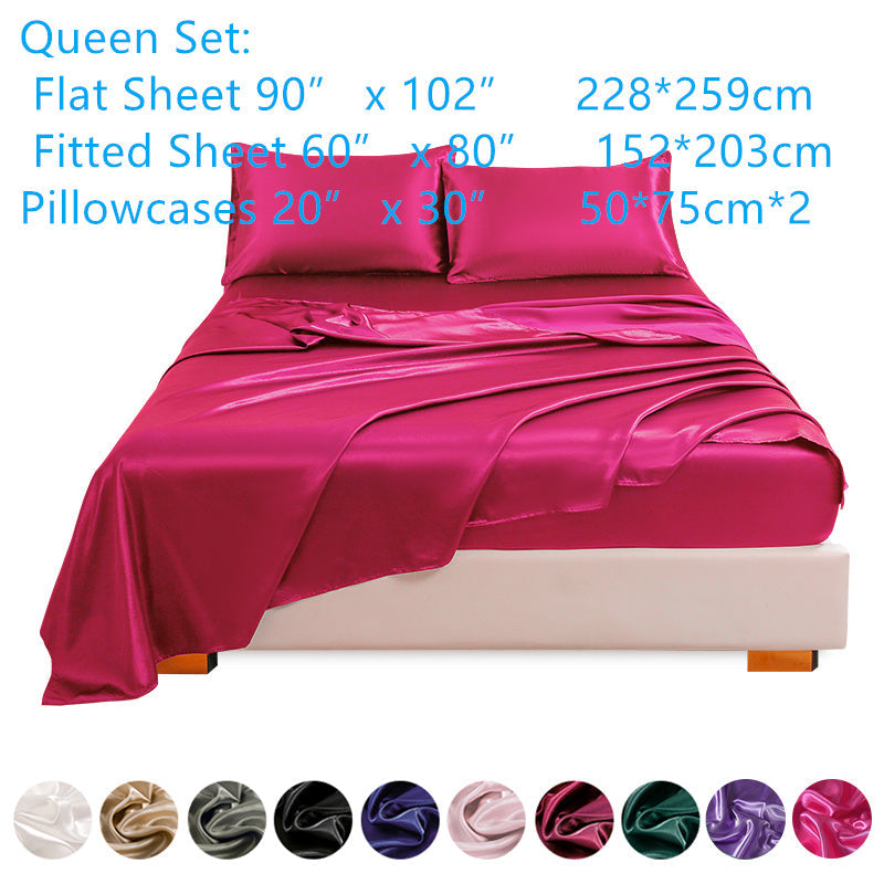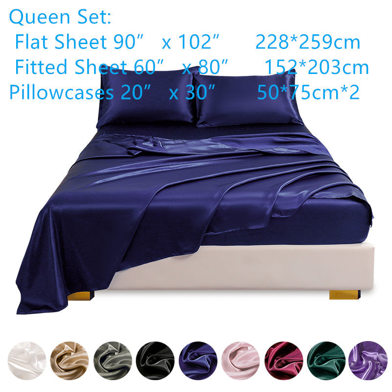 Juego de 4 sábanas de satén para ropa de cama incluye sábana superior, sábana ajustable y fundas de almohada, lujoso dormitorio, habitación de invitados