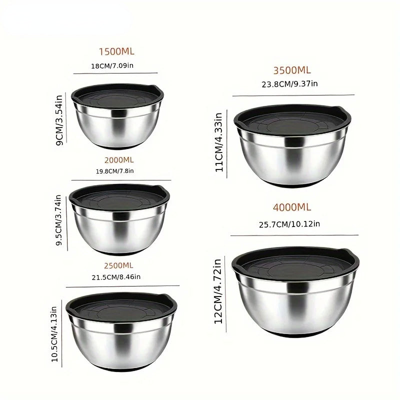 Juego de 5 cuencos de acero inoxidable con tapas herméticas para hornear y almacenar