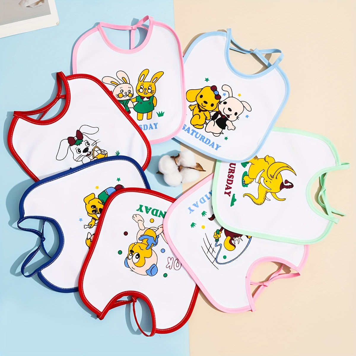 Juego de 7 baberos impermeables con temas semanales para bebé, con tela suave y diseños divertidos