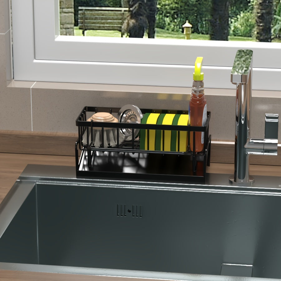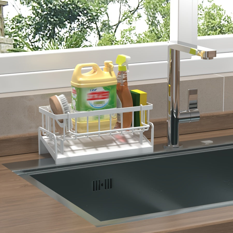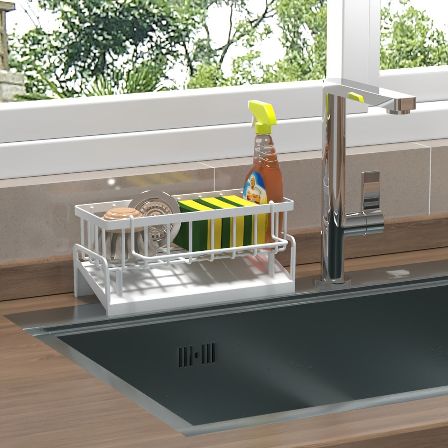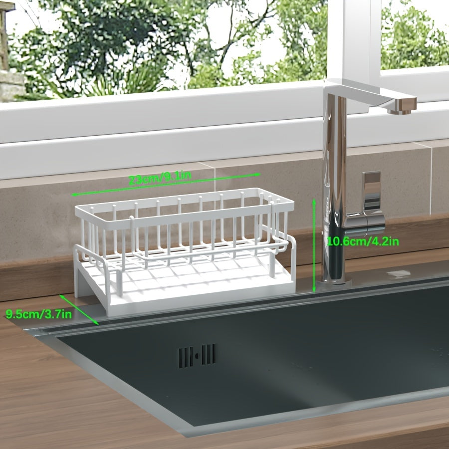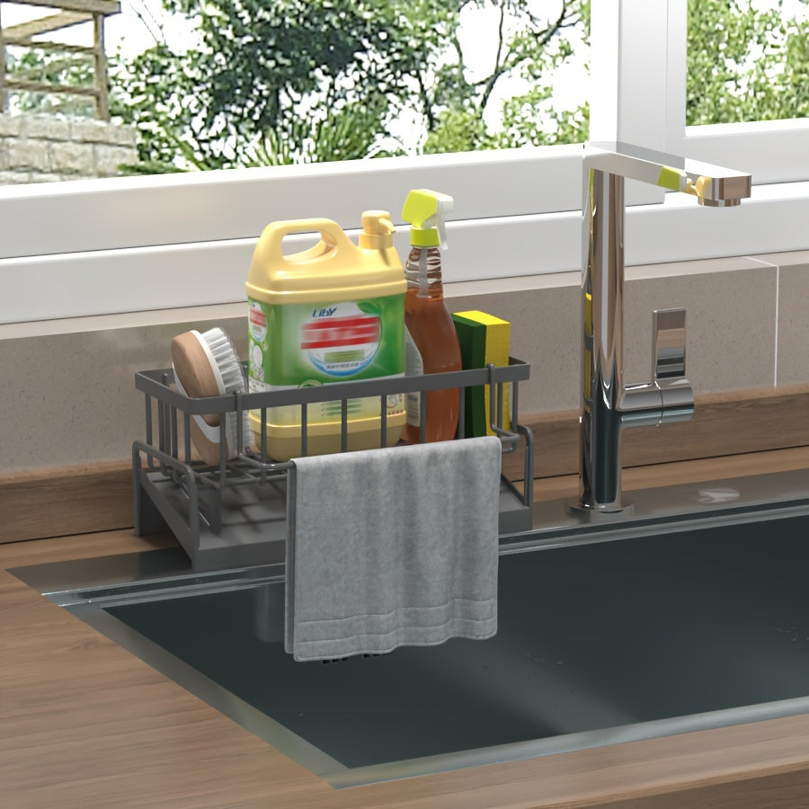 Organizador de fregadero de cocina con barra para toallas, bandeja de goteo y escurridor de grifo