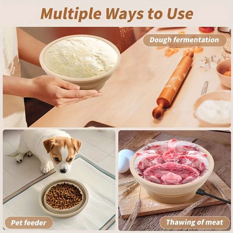 Cuenco de fermentación de silicona con control de temperatura y calefacción USB para pan y pasteles