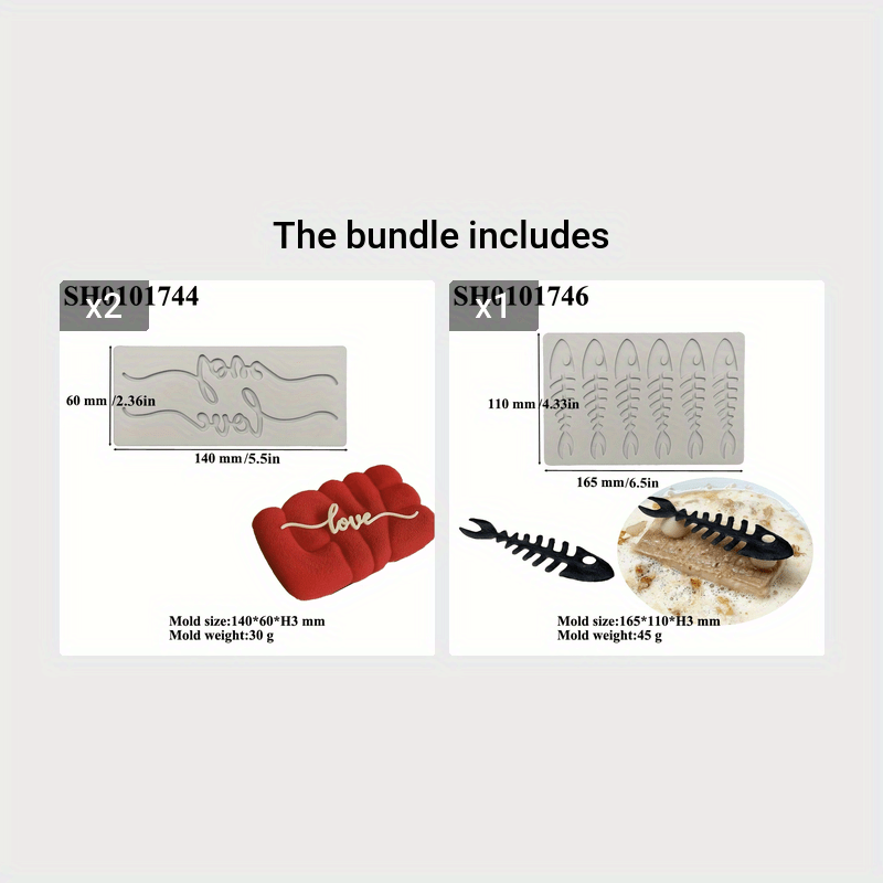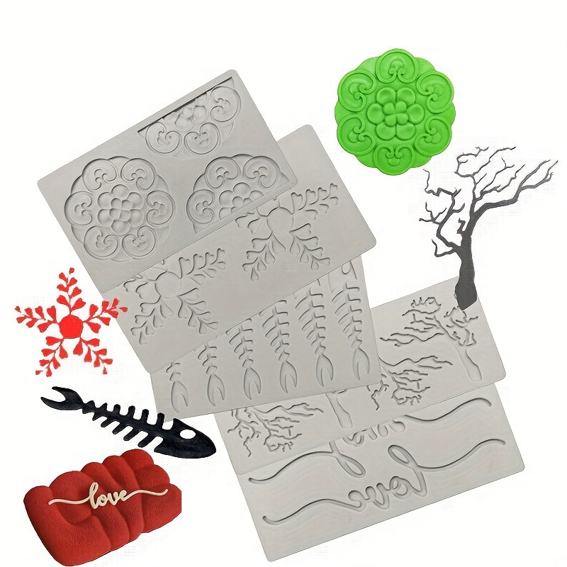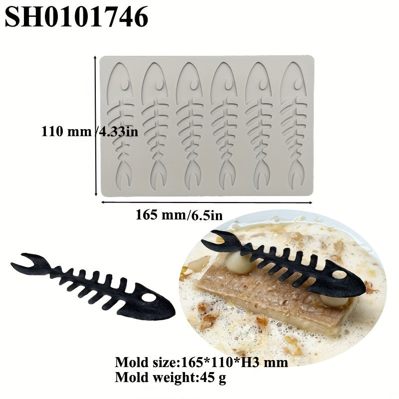 Molde de silicona para chocolate con forma de encaje, pez óseo 3D, decoración de comida