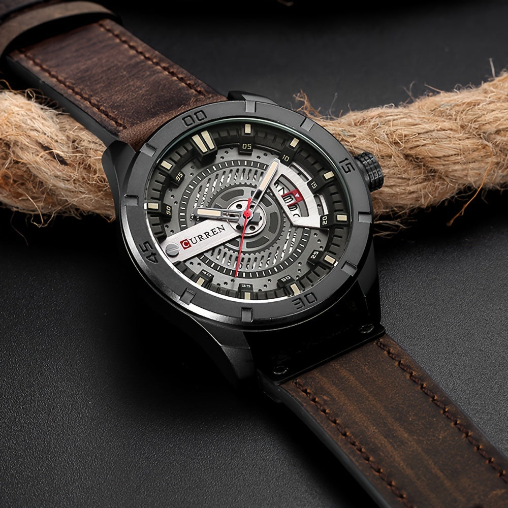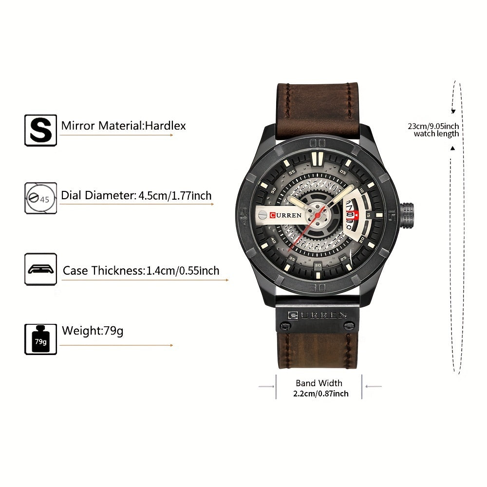 Correa de reloj de cuarzo en cuero PU con función de fecha para uso casual y de negocios