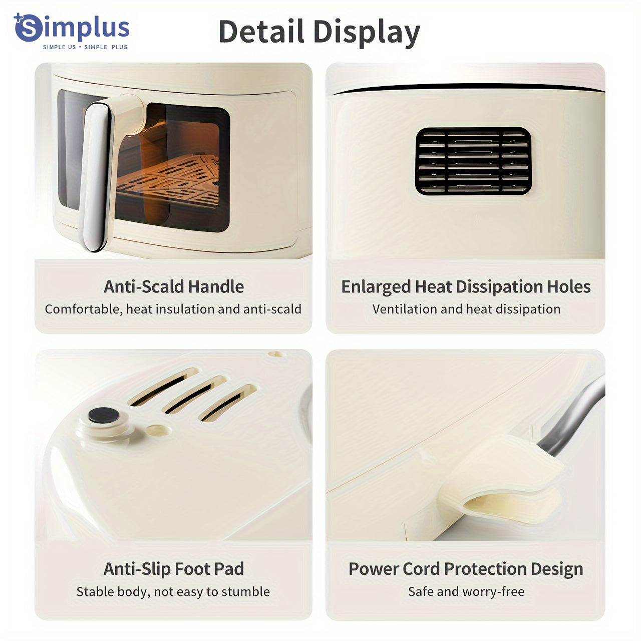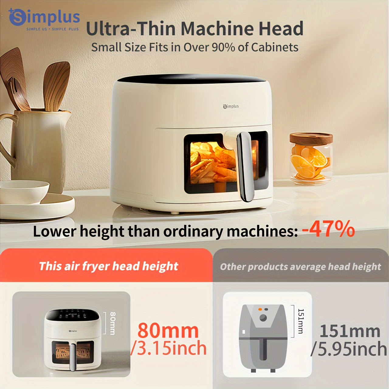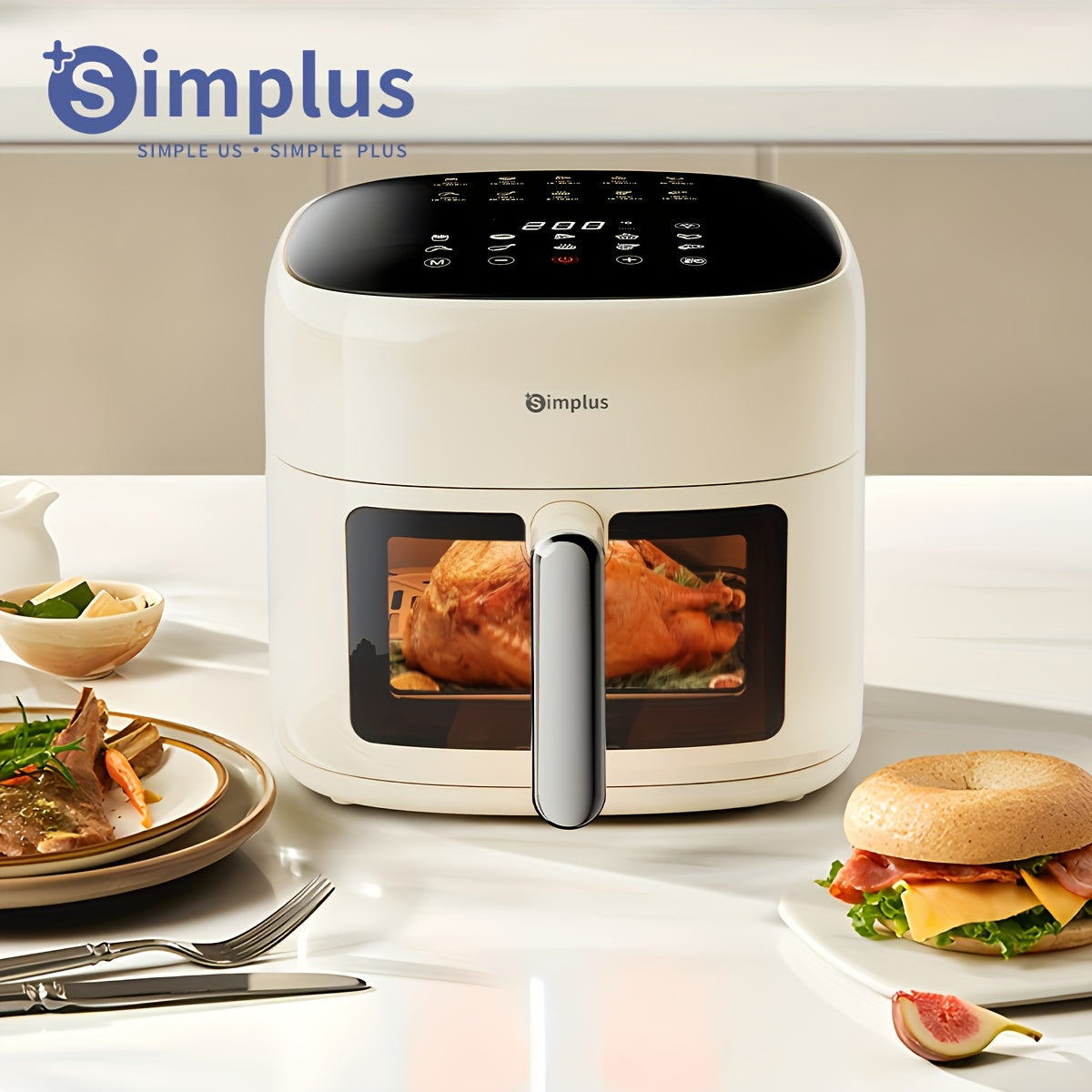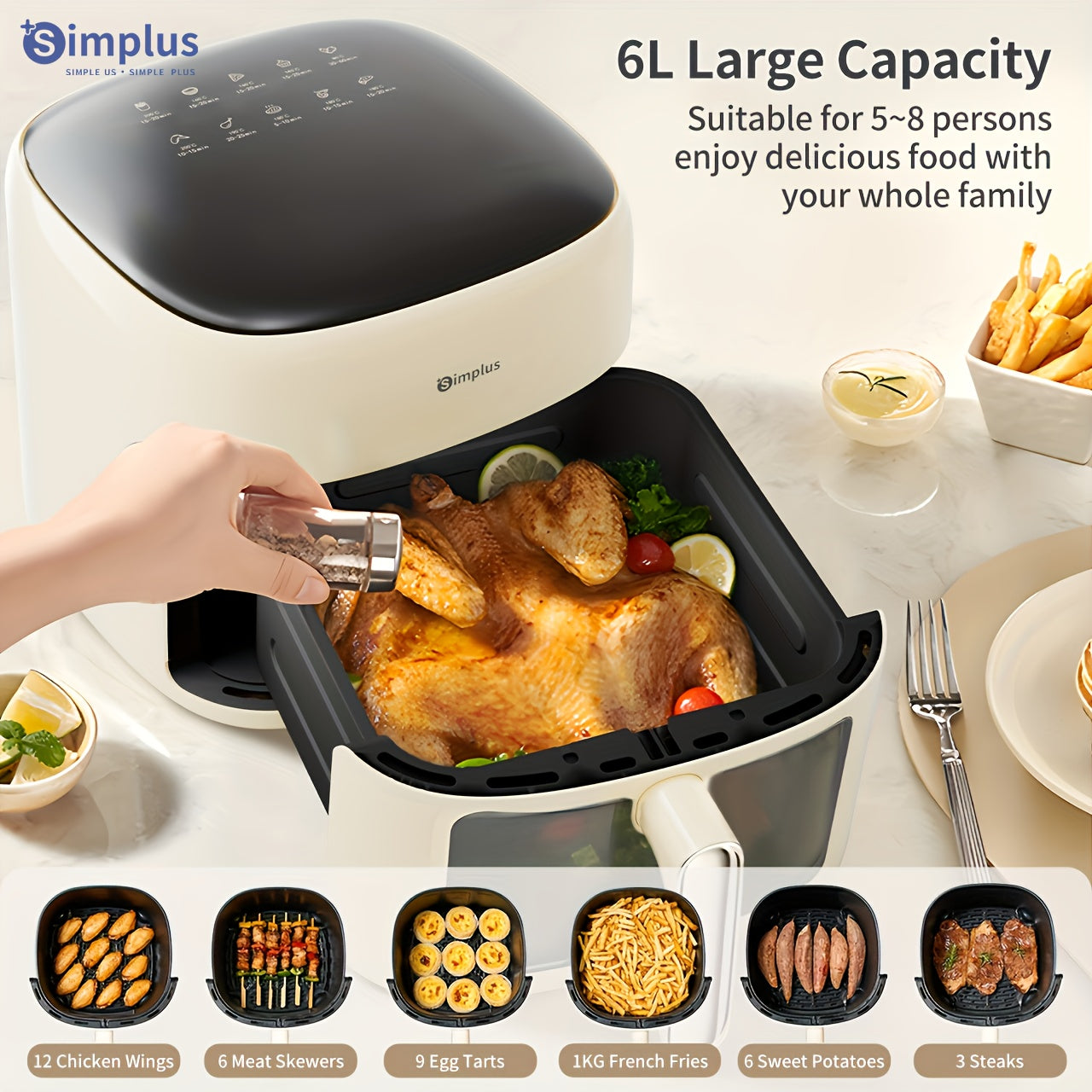 Freidora de aire de 6L con pantalla táctil LCD, 10 menús preestablecidos, diseño compacto para 5-8 personas