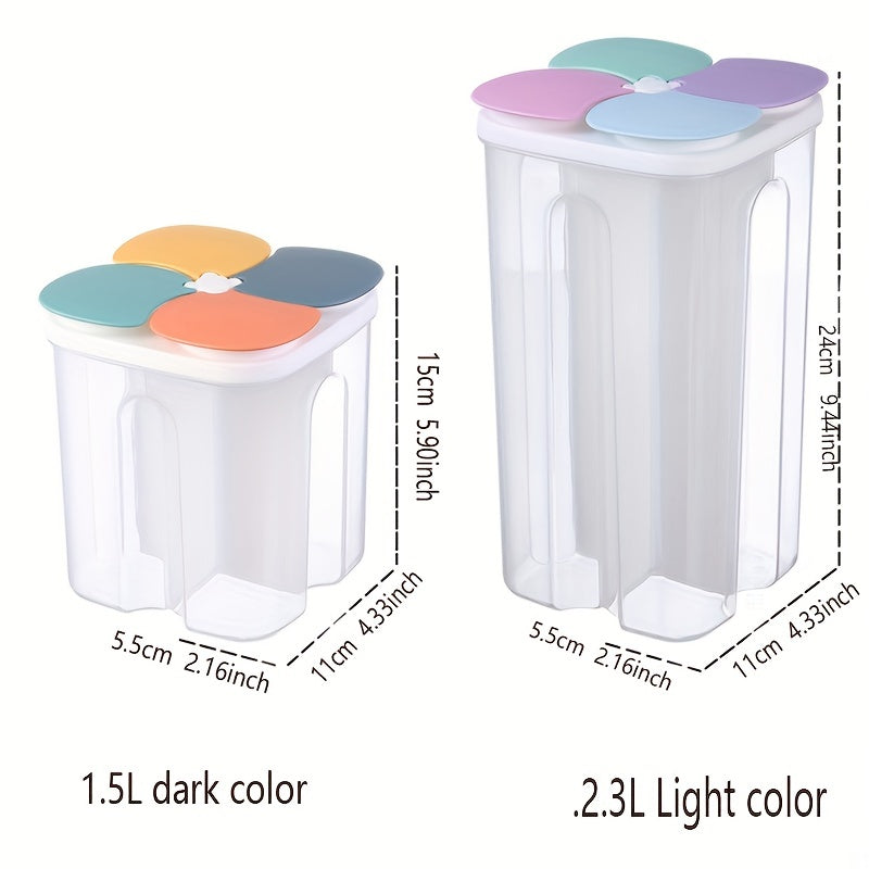 Contenedor de almacenamiento de alimentos con 4 cuadrículas, hermético, transparente, cuadrado, para cereales, arroz, pasta