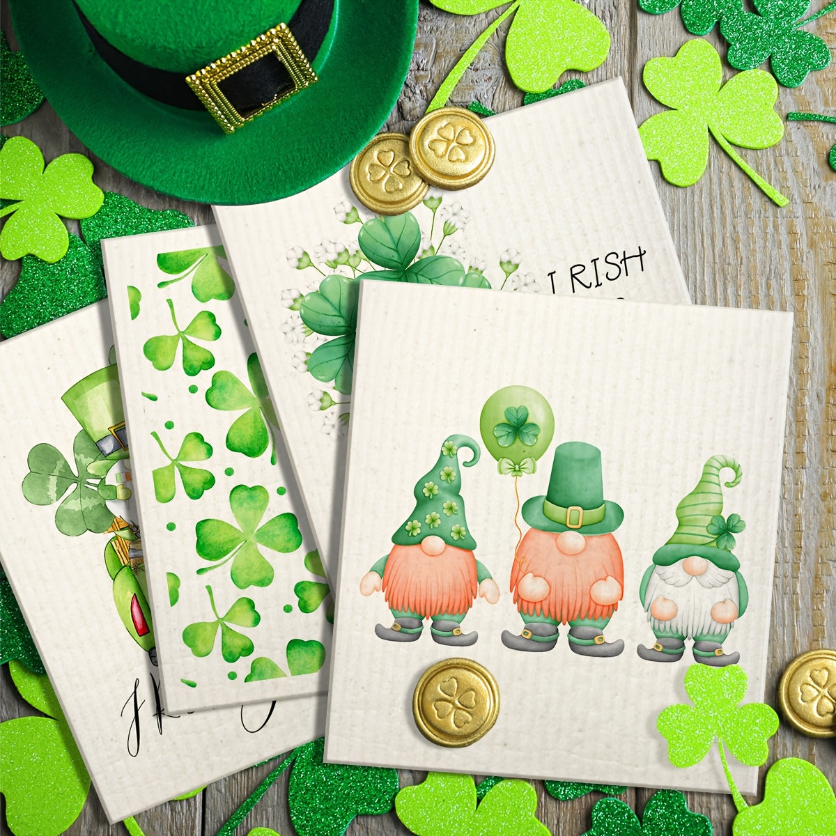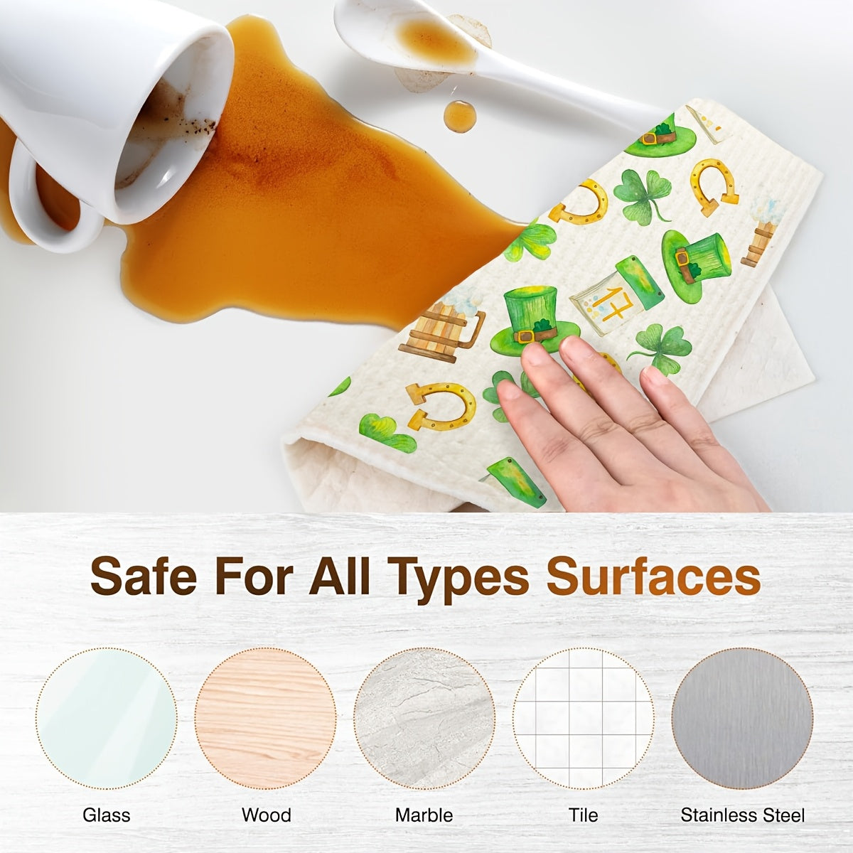 Toallas de cocina de seis unidades para el Día de San Patricio, reutilizables, de fibra de pulpa de madera, duende, trébol