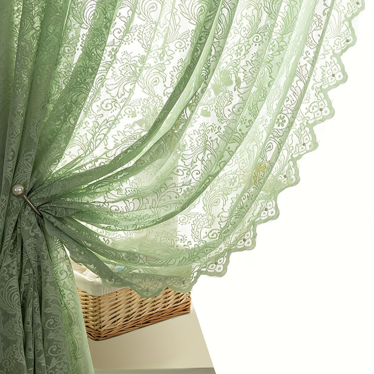 Cortina de tubo con flores pequeñas, con cuentas y encaje para cocina, dormitorio, sala de estar