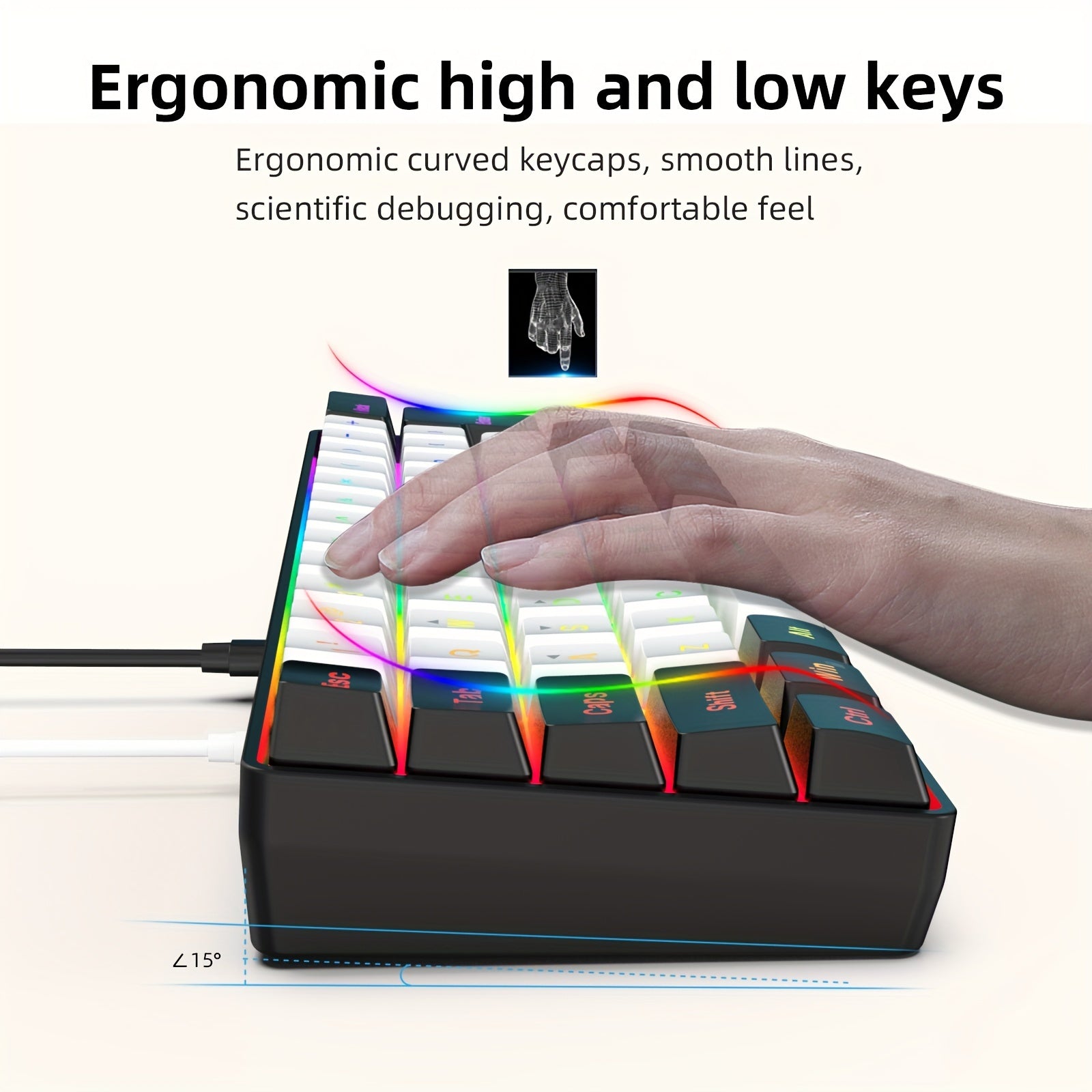 Teclado de juegos RGB mini de 60% con 61 teclas retroiluminadas, con cable USB, para PC y Mac, escritura y juegos