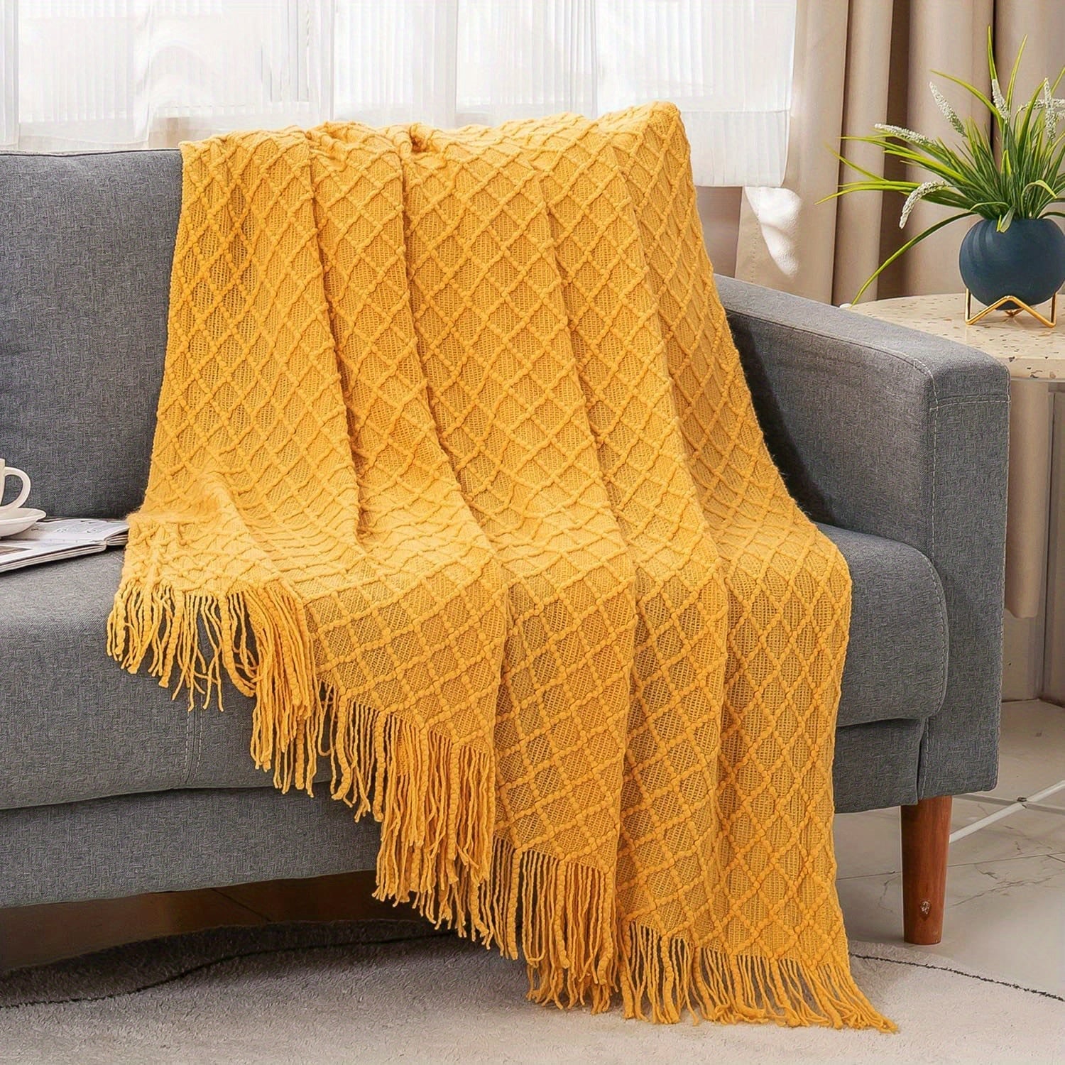 Manta de punto acogedora con flecos para sofá o cama