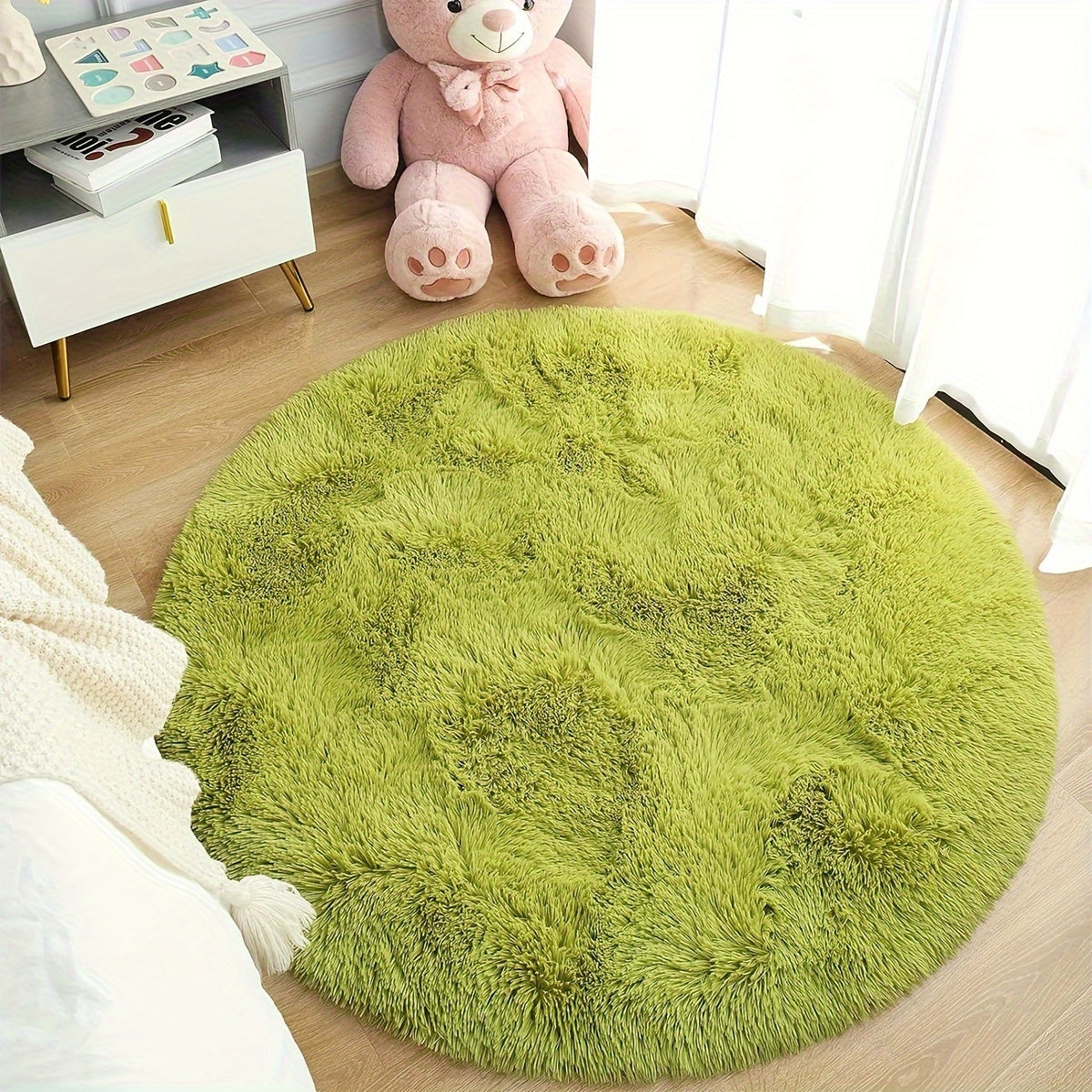Alfombra redonda de felpa suave con diseño moderno de poliéster para dormitorio y sala de estar