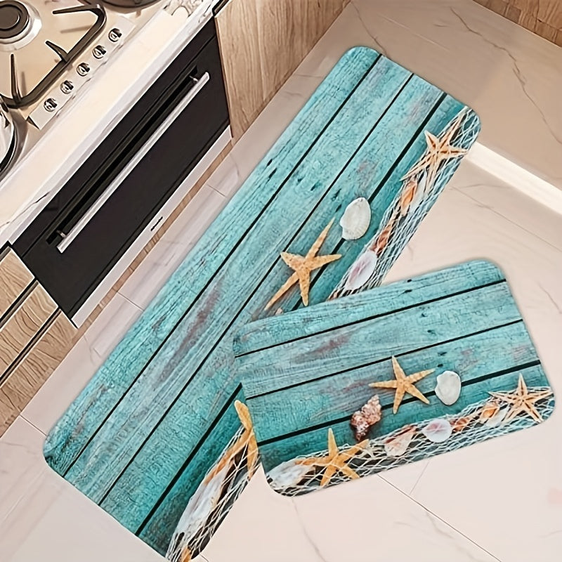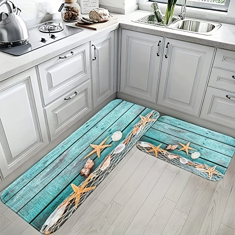 Alfombra antideslizante impermeable con estampado de estrella de mar 39.88x149.86cm para cocina, baño y sala de estar