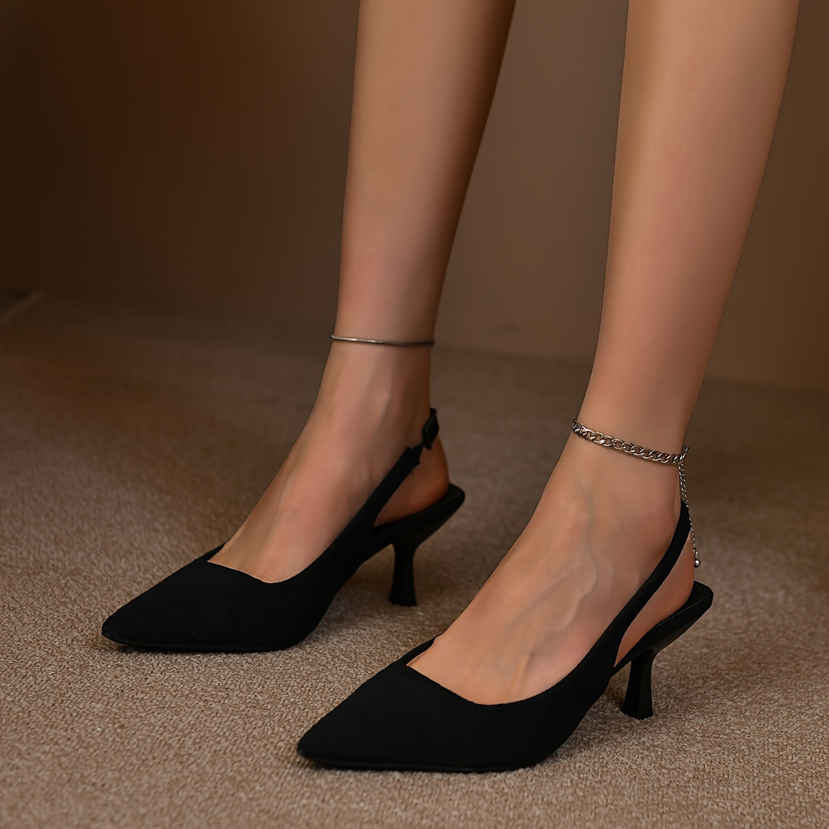 Tacones de aguja de color sólido para mujer con punta en forma de punta y correa en el tobillo