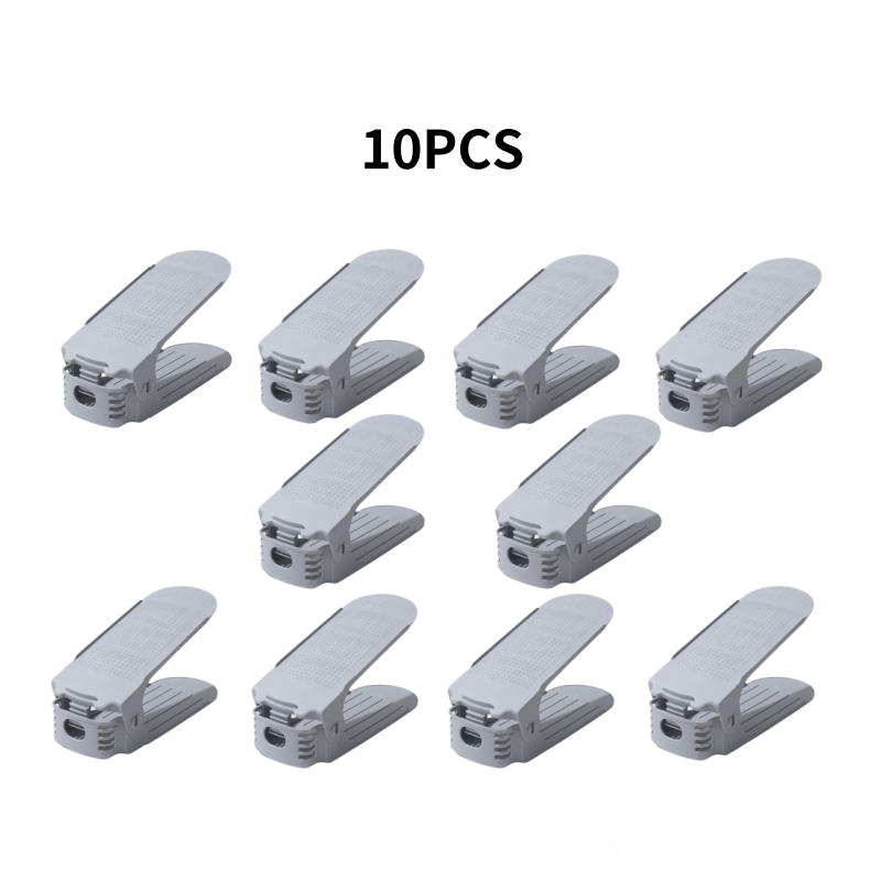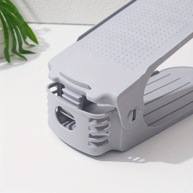 Estante para zapatos de doble capa ajustable y plegable, gris y negro, para almacenamiento de flats y zapatillas