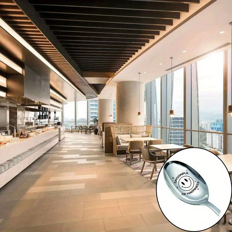 Cuchara de acero inoxidable grabada para café, postres, té, helado, avena