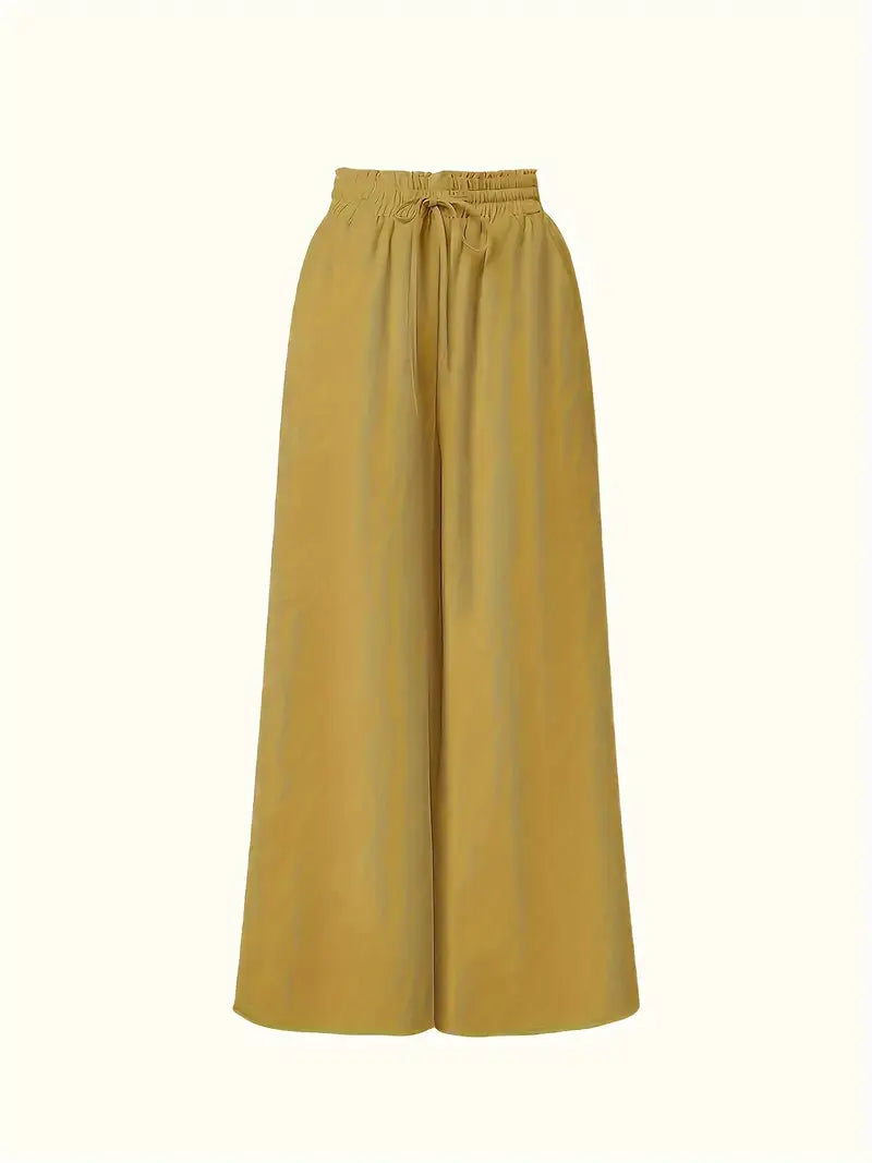 Pantalones de pierna ancha para mujer con cintura elástica y lazo para primavera y verano casual