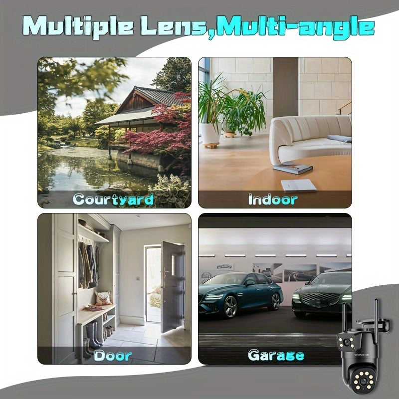 Cámara de seguridad WiFi de doble lente 720P HD Visión nocturna Detección de movimiento Audio bidireccional para exteriores