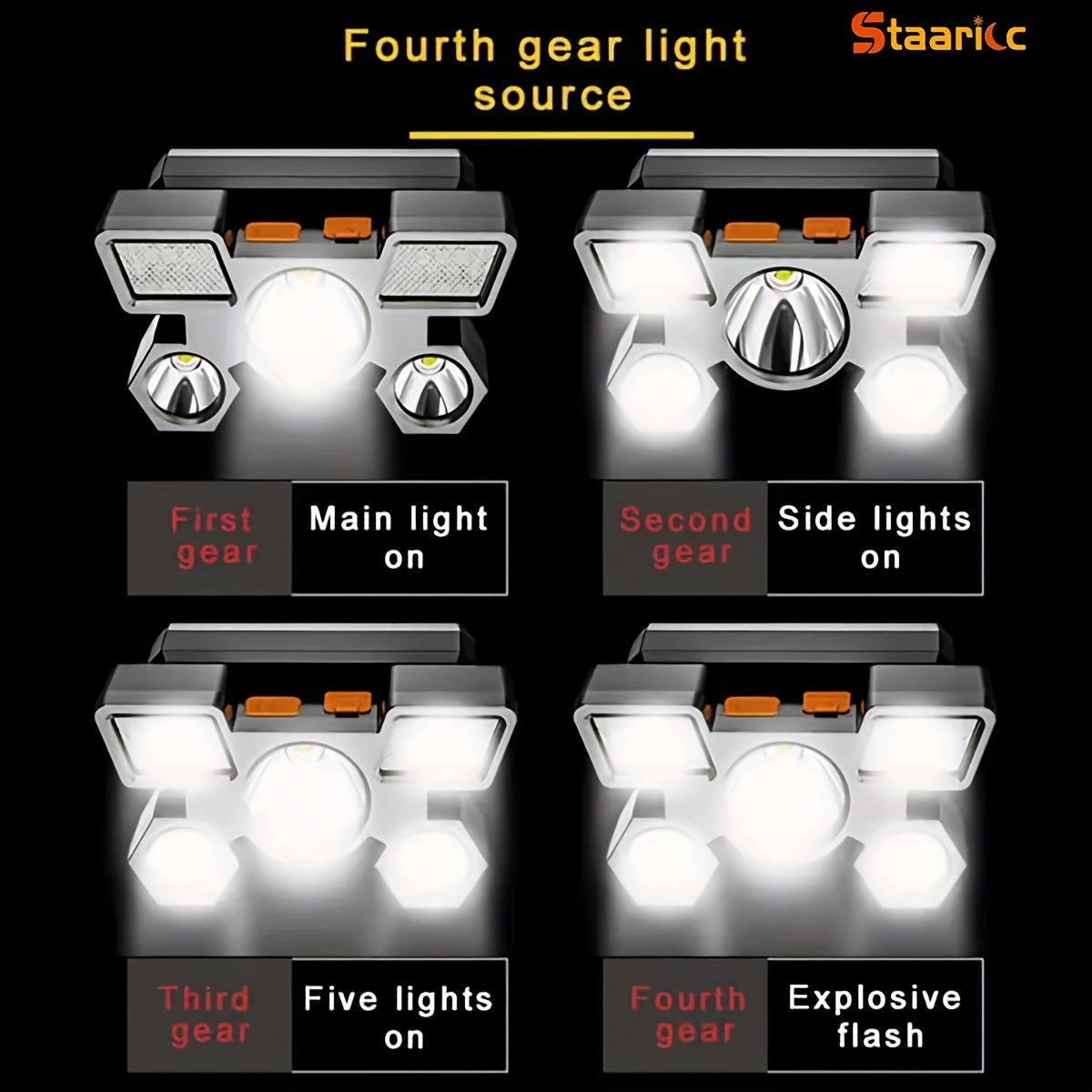 Linterna frontal LED recargable 4 modos ligera para acampada al aire libre pesca minería azul oro