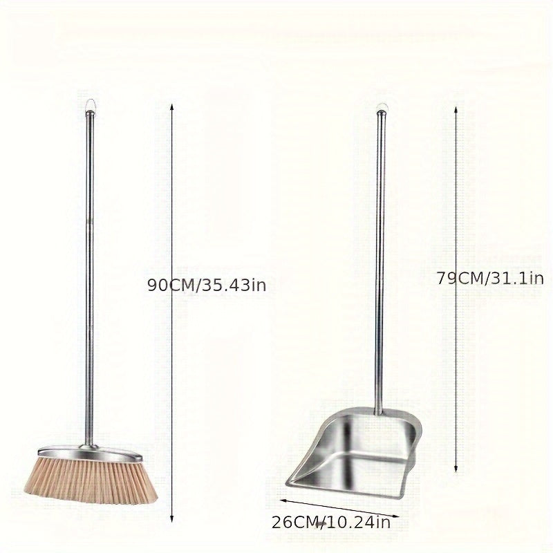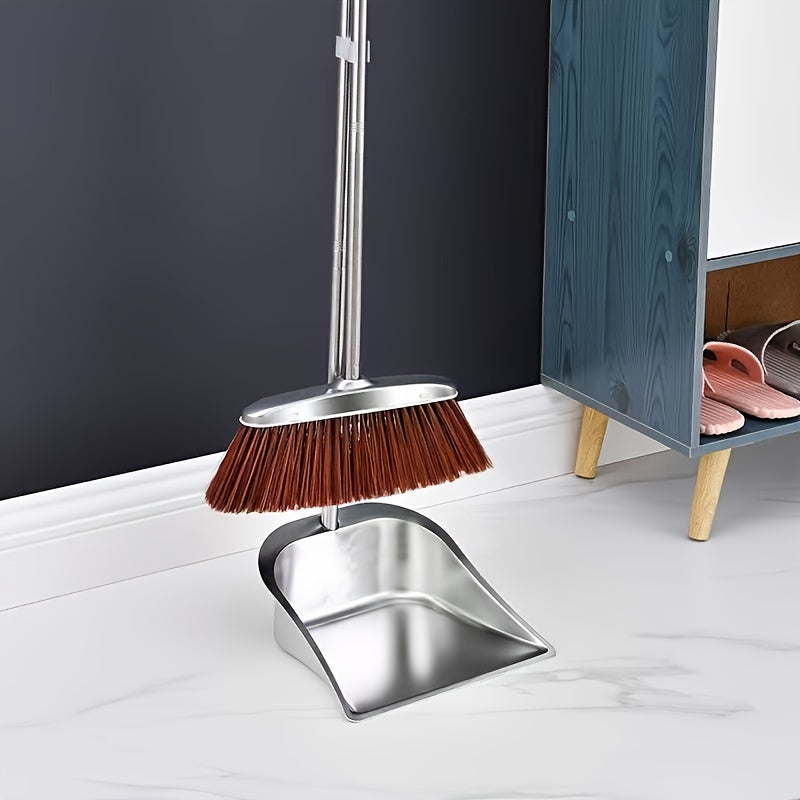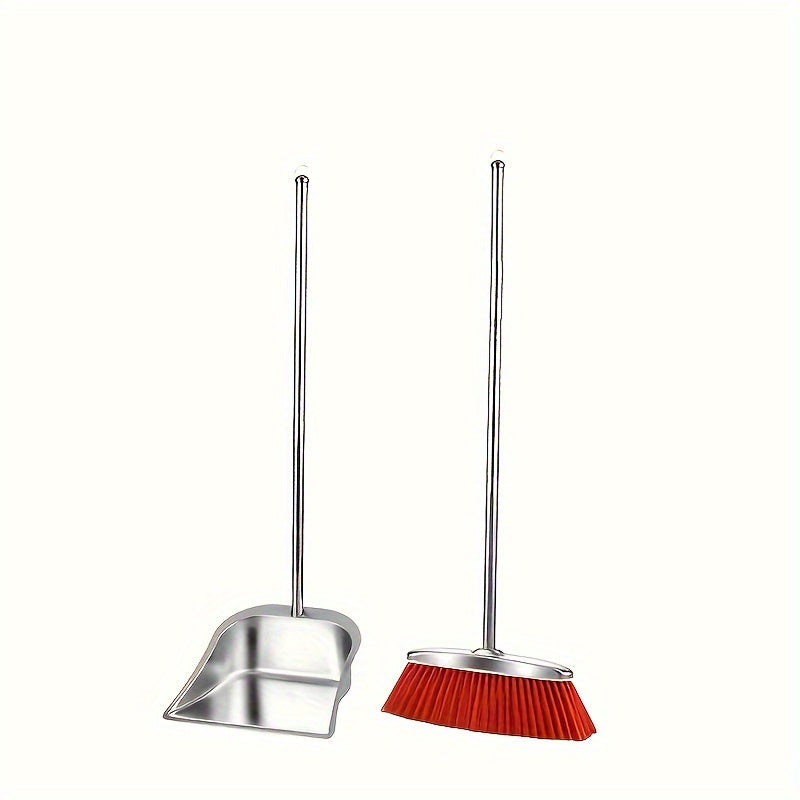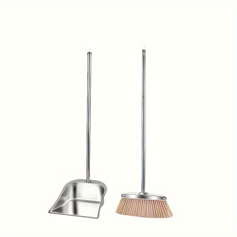 Juego de escoba y recogedor de acero inoxidable con borde biselado para limpieza de esquinas en hogar, oficina, escuela y residencia