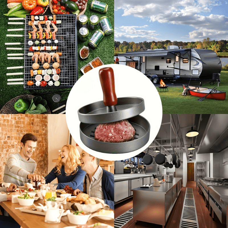 Prensa de hamburguesas de acero inoxidable para asar molde antiadherente para carne, queso, verduras