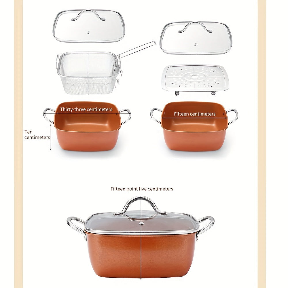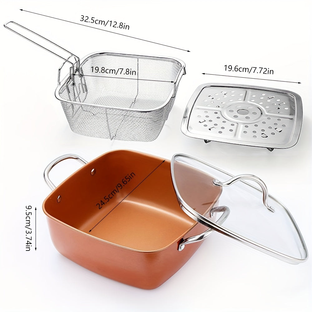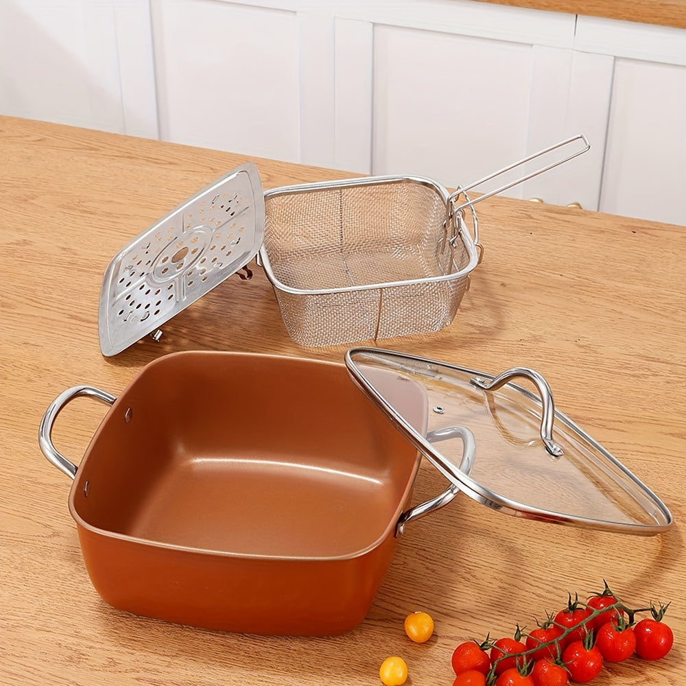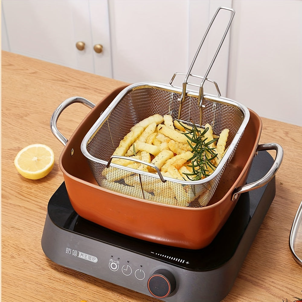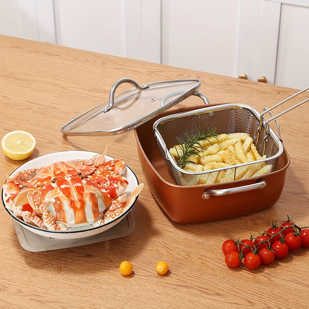 Juego de freidora profunda de acero inoxidable con base de inducción, tapa, cesta de malla y vaporizador