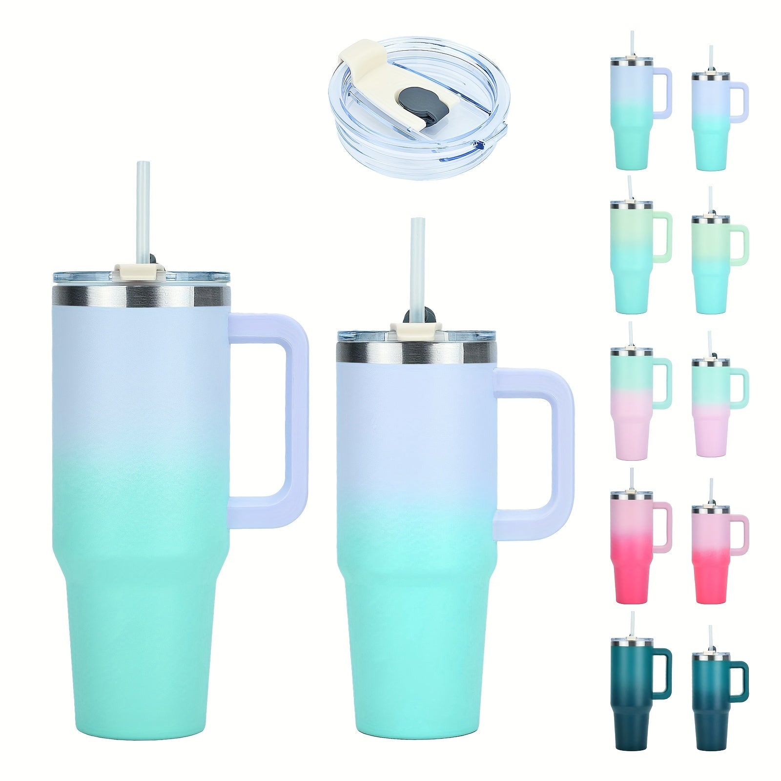 Vaso de doble pared de acero inoxidable con tapa con asa y pajilla, aislado al vacío para bebidas calientes y frías