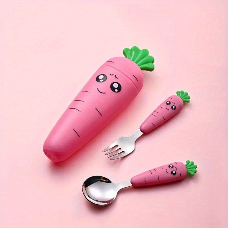 Juego de tenedor y cuchara en forma de zanahoria de acero inoxidable para cubiertos portátiles