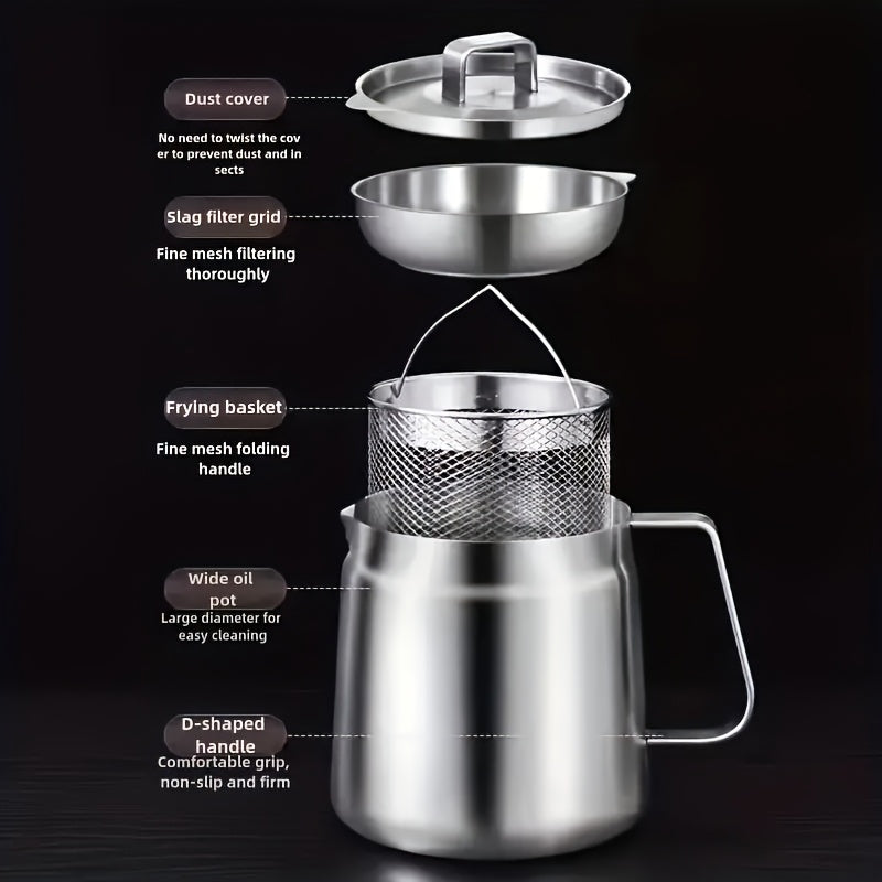 Olla de filtro de aceite de acero inoxidable con colador de malla de alta capacidad sin goteo