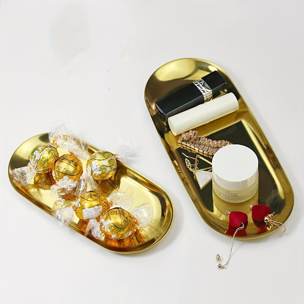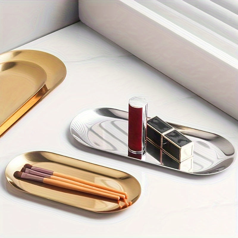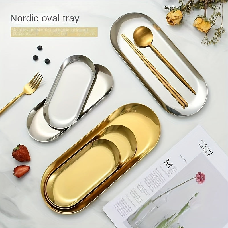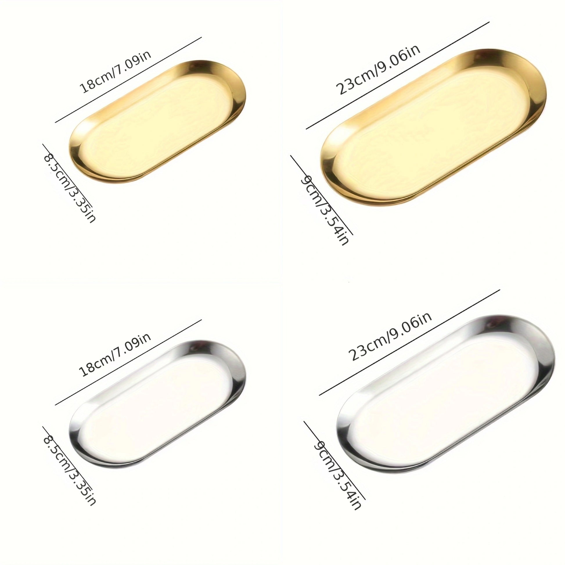 Bandeja de joyería ovalada de acero inoxidable para almacenamiento y servicio