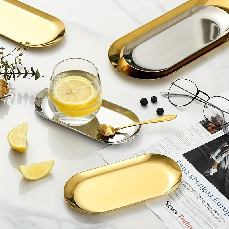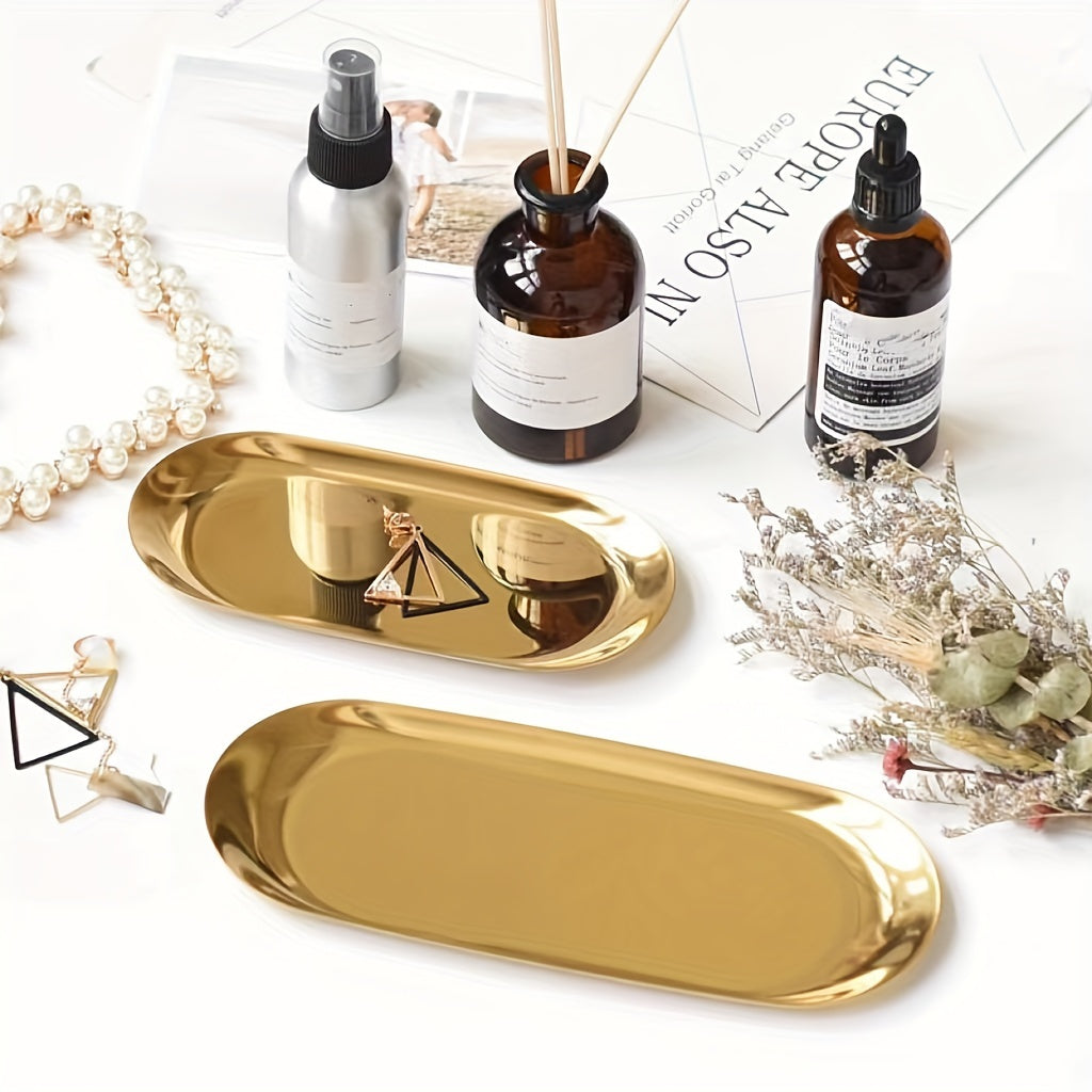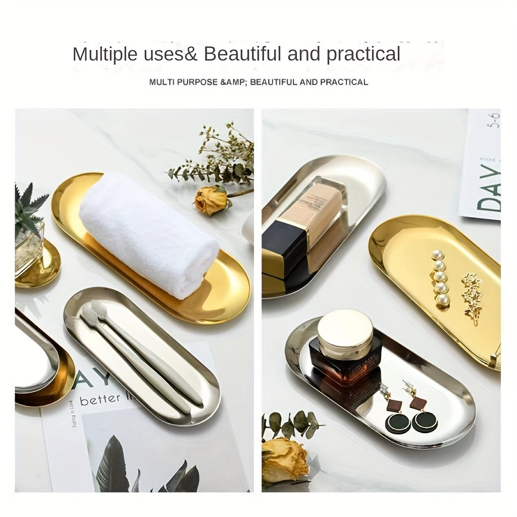 Bandeja de joyería ovalada de acero inoxidable para almacenamiento y servicio